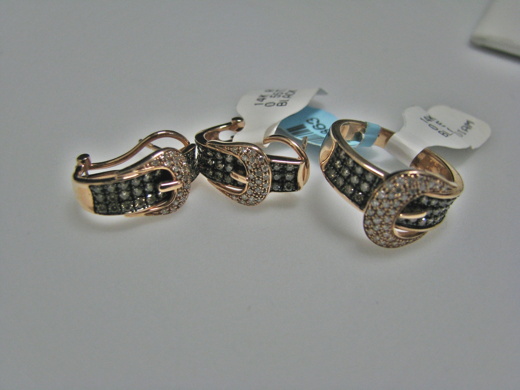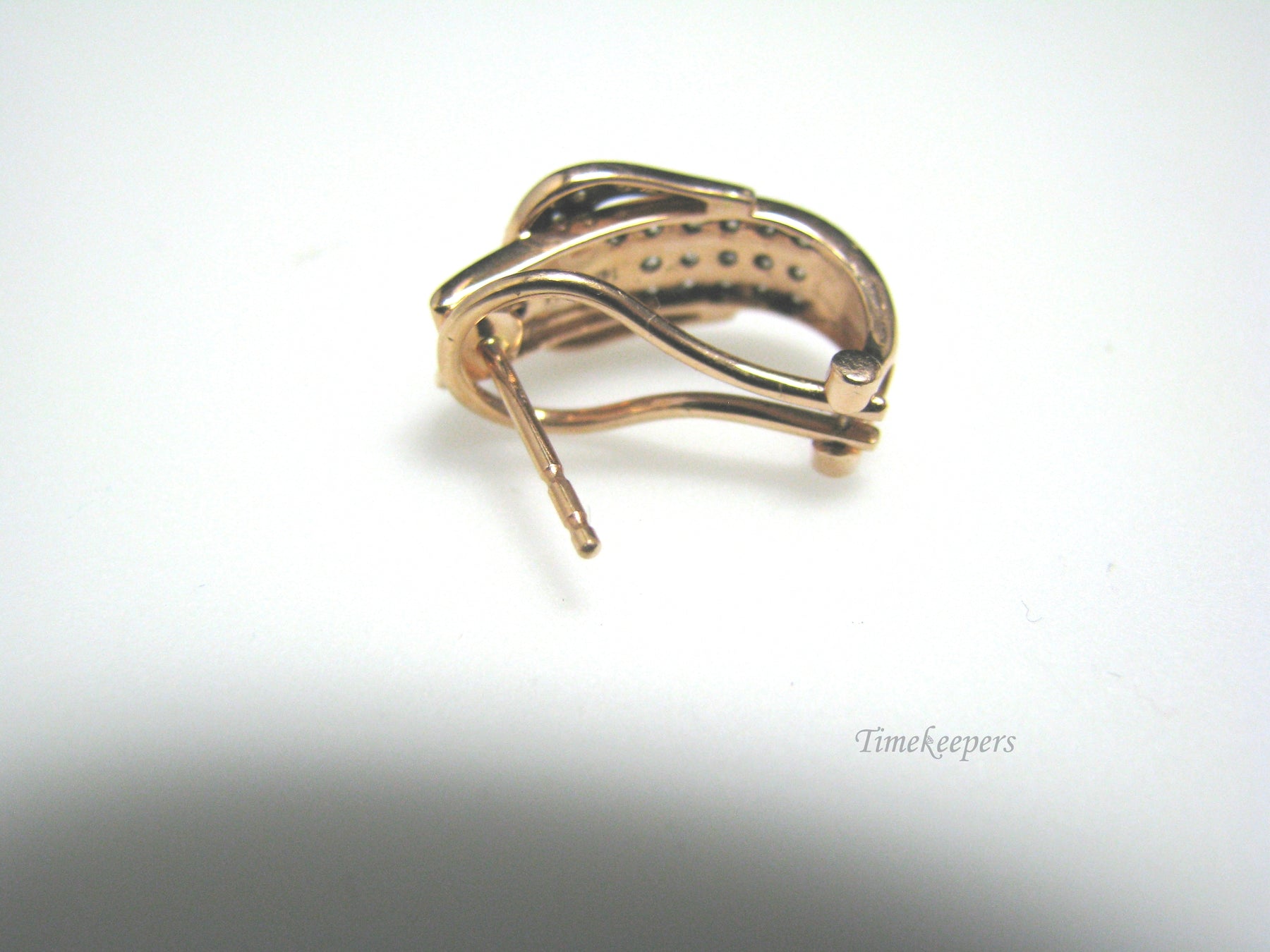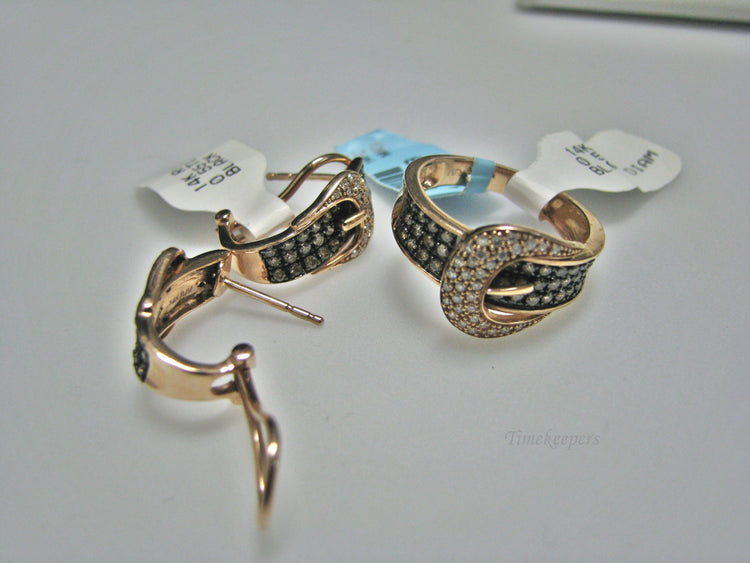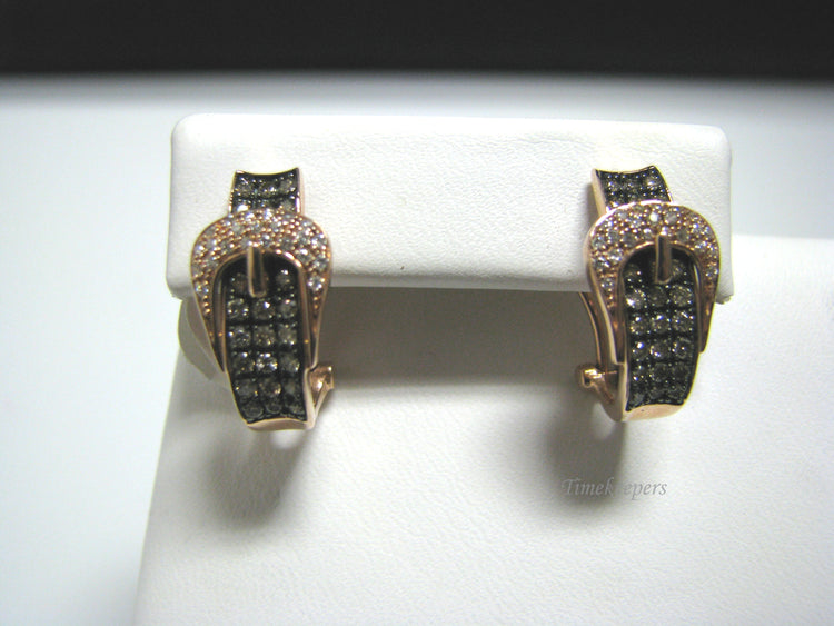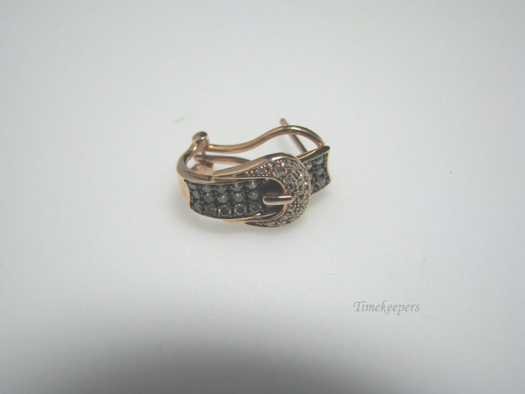 H034 Stunning 14k Rose Gold White and Black Diamonds Buckle Earrings