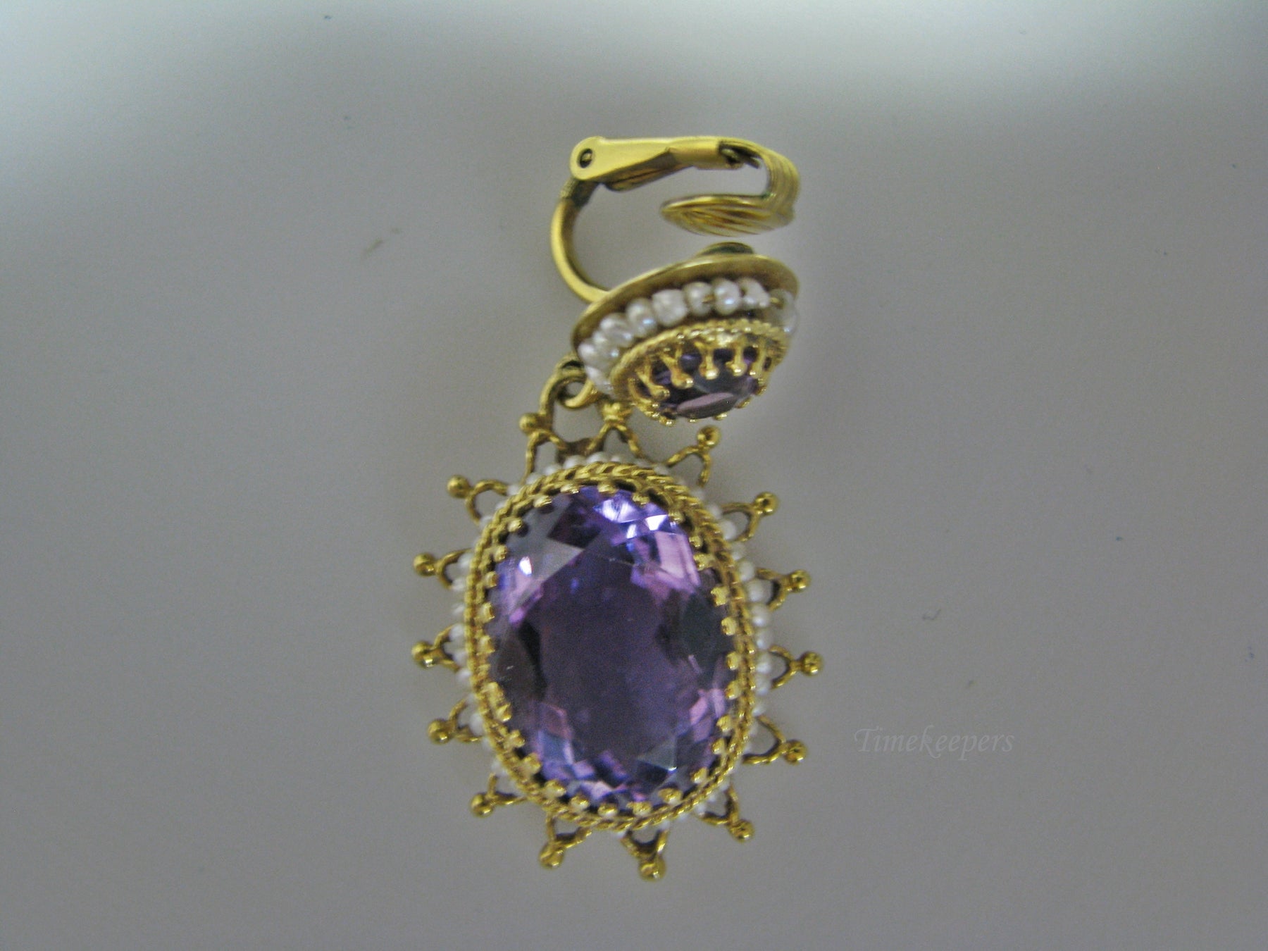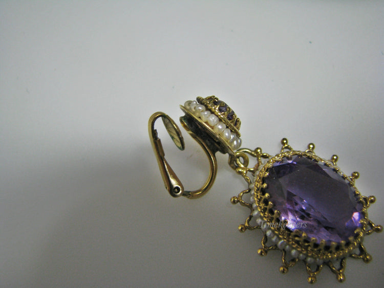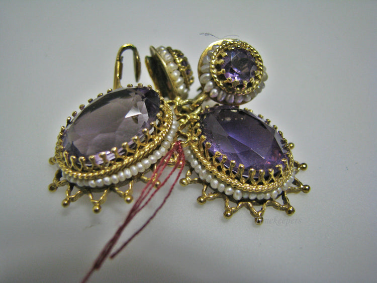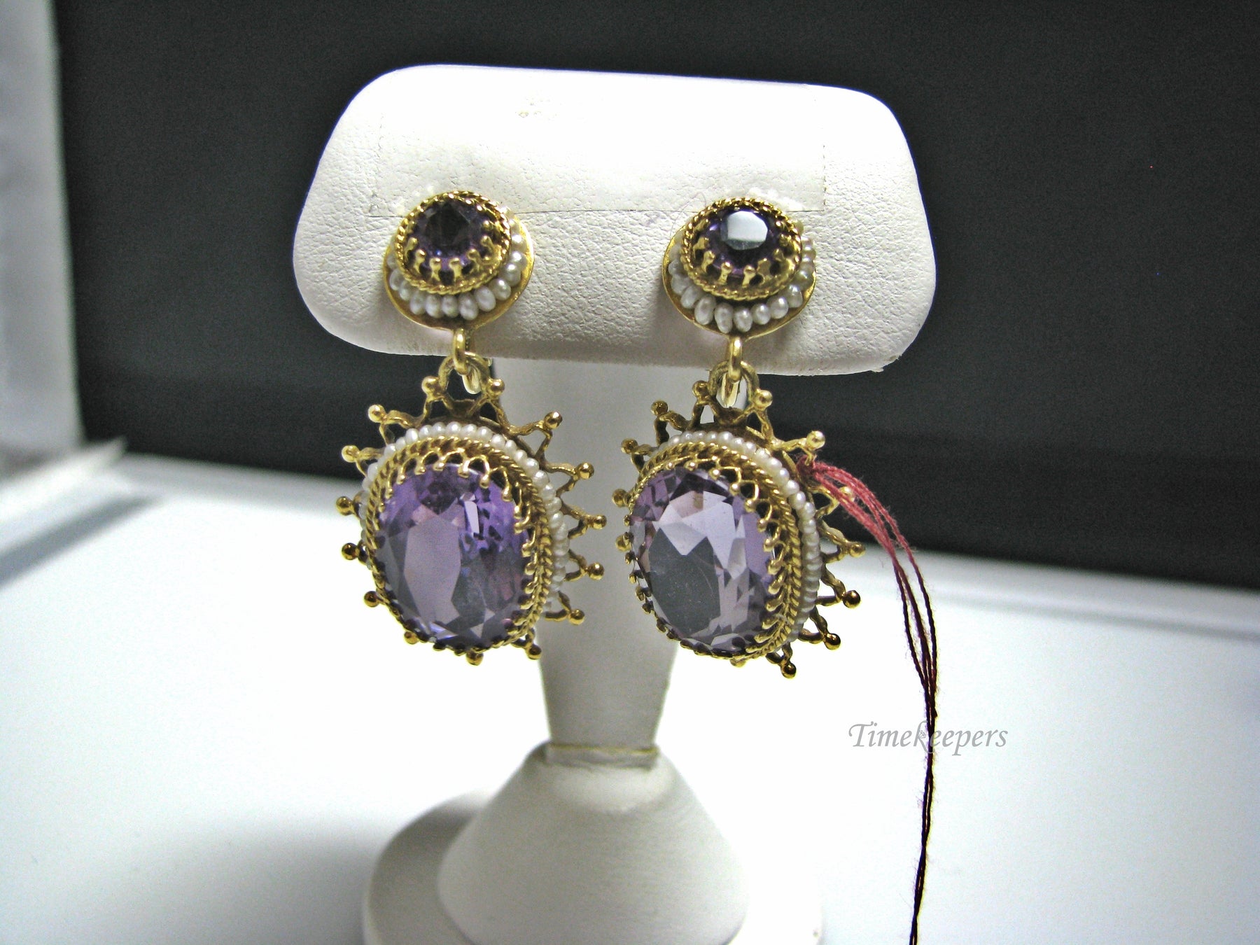 For Sale: (1)H070 Stunning Amethyst Earrings with Sea Pearls in 14k Yellow Gold