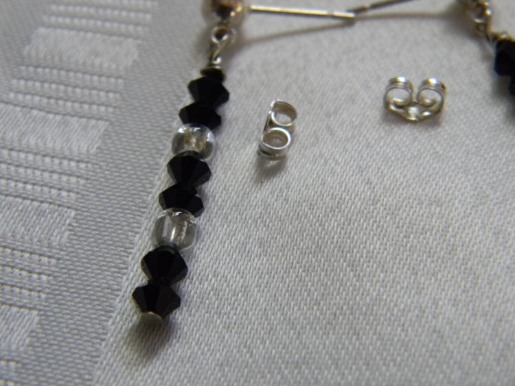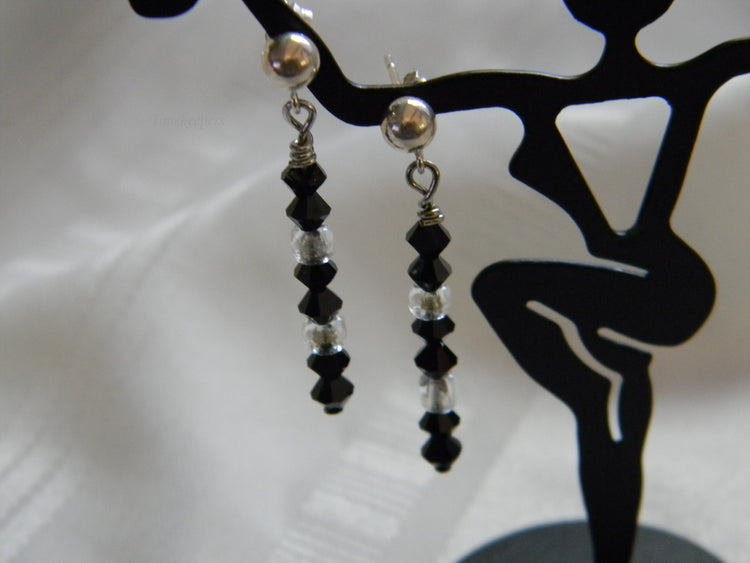 Pre-owned vintage item. Great condition. Sold as is, as seen on pictures. Stunning black and clear bead dangle earrings on Sterling ball posts. These earrings are stamped 925.