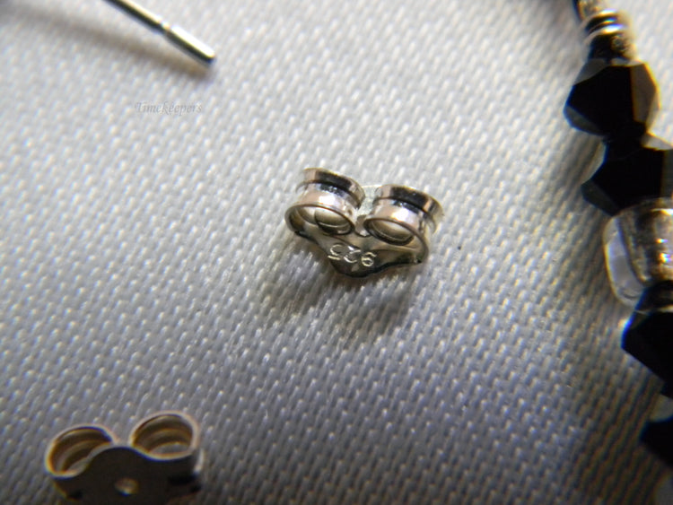For Sale: (1 pair) Beautiful Sterling Silver Dangle Beaded Earrings with Black Stones
