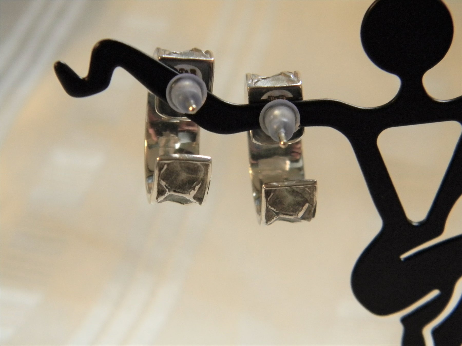For Sale: (1) Nice Sterling Silver Stud Hoop Pierced Earrings Geometric design