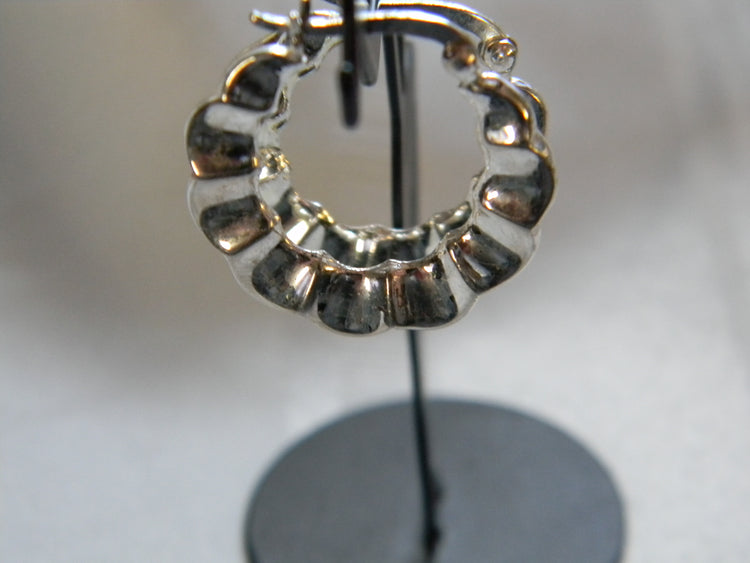 h474 Nice Sterling Silver Hoop Pierced Earrings Geometric design