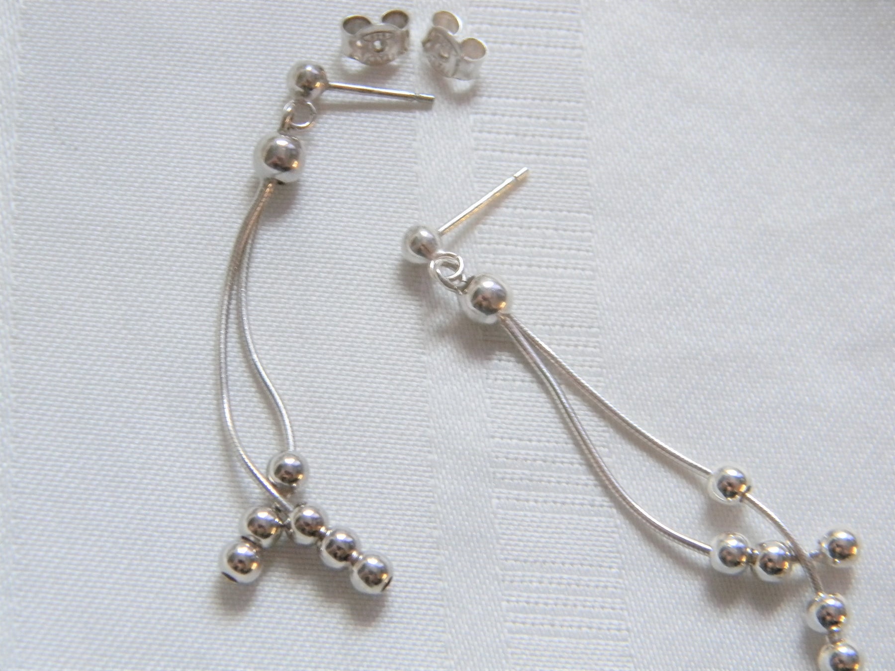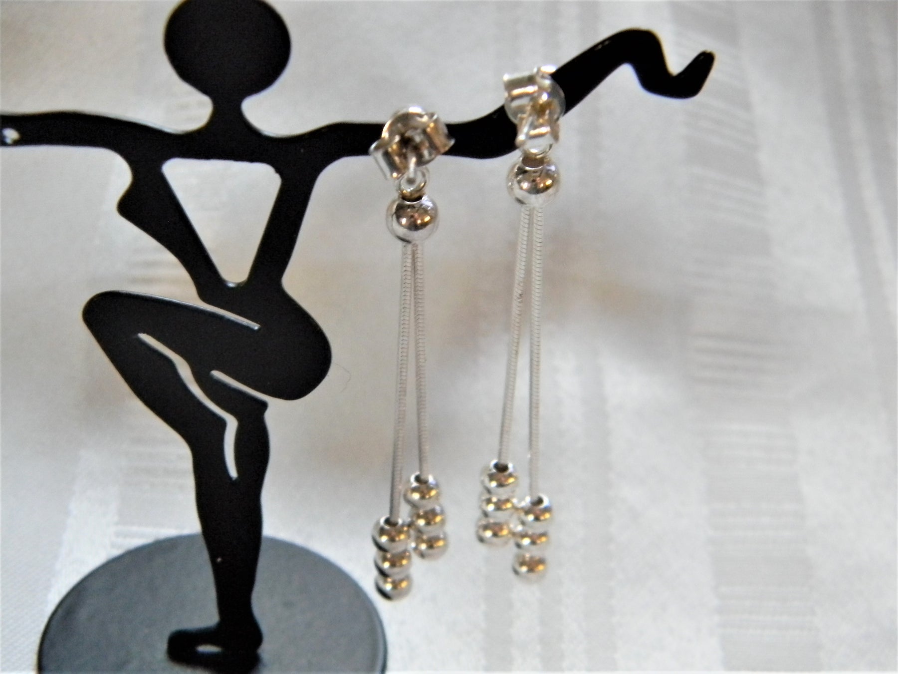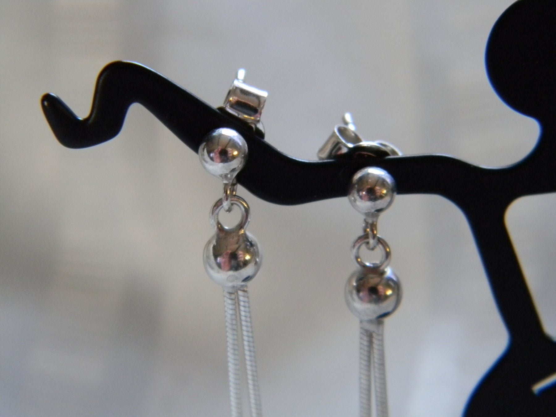 h482 Stunning Sterling Silver Stud Dangle Pierced Earrings with Silver Balls
