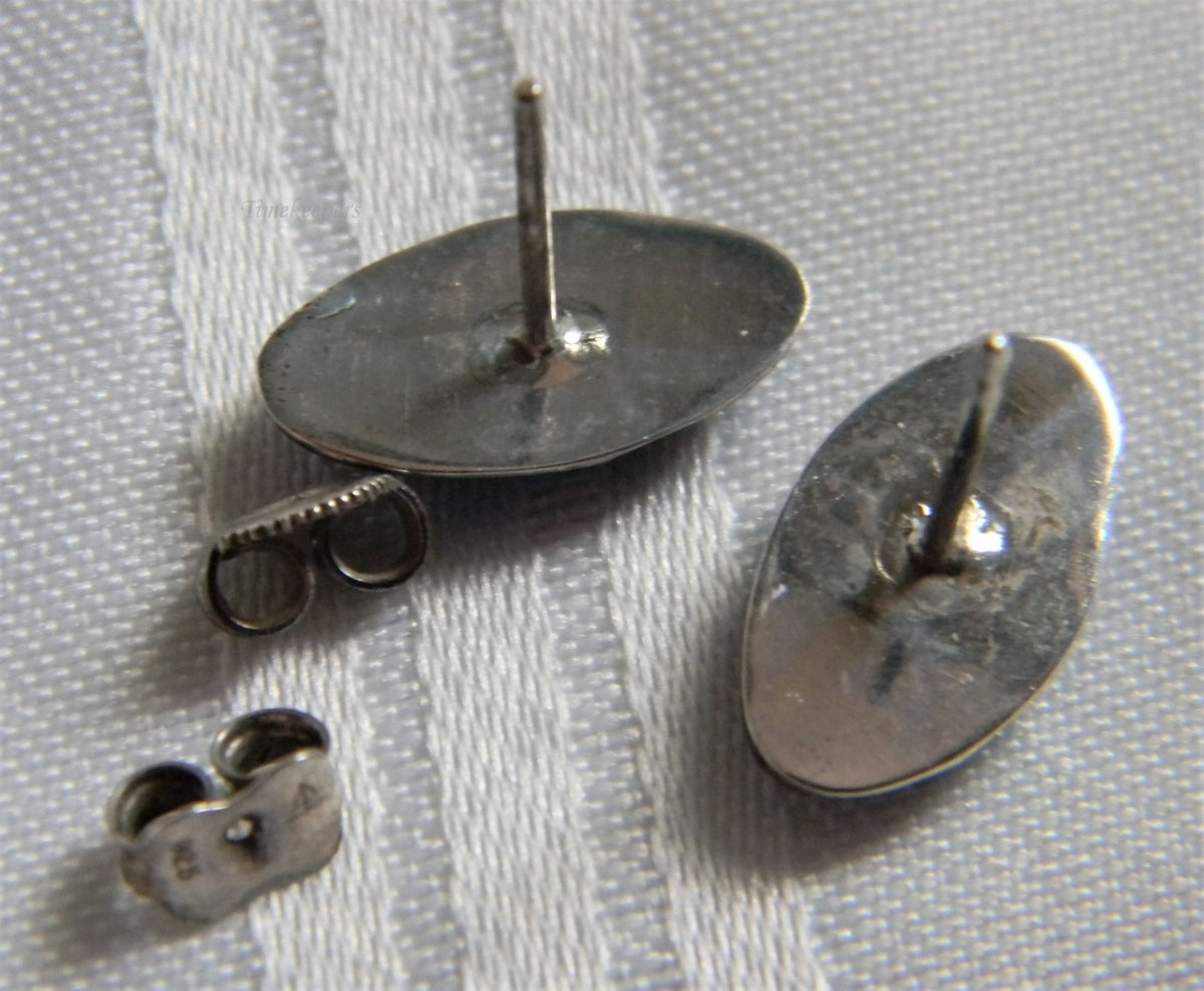 For Sale: (1) Unique Oval Sterling Silver Earrings with Enamel finish and Malachite