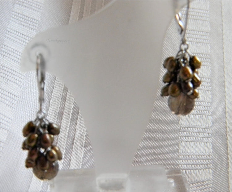 h996 Unique Brown Bead Dangle Earrings on Silver tone Wires