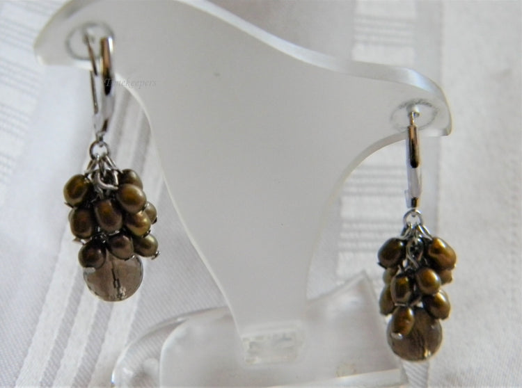 For Sale: (1) Unique Brown Bead Dangle Earrings on Silver tone Wires