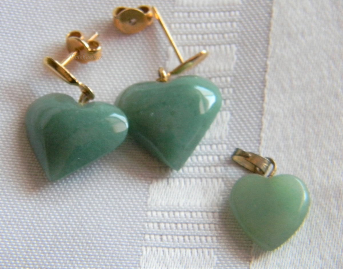 For Sale: (1) Beautiful Gold Filled Jade Heart Dangle Earrings and Pendant