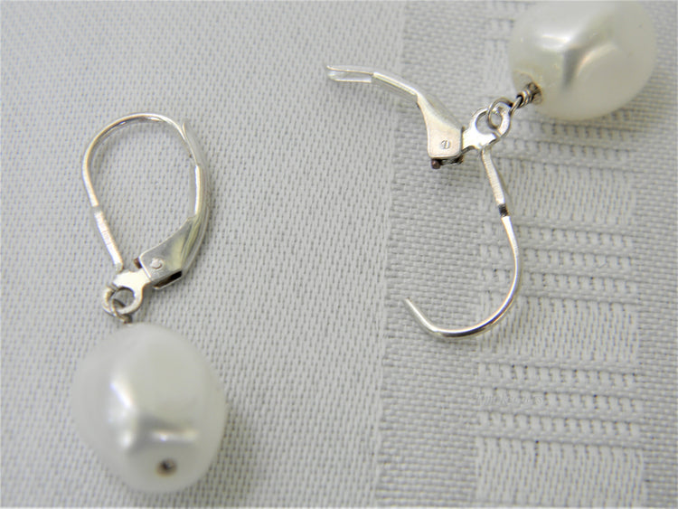 j391 Stunning Freshwater Pearl Dangle Sterling Silver Earrings