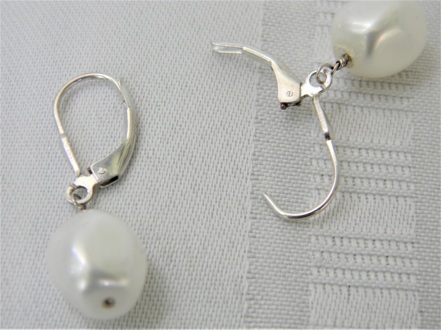 These lovely preowned earrings feature a dangling fresh water pearl