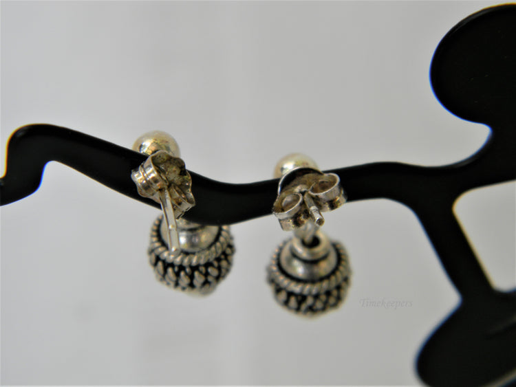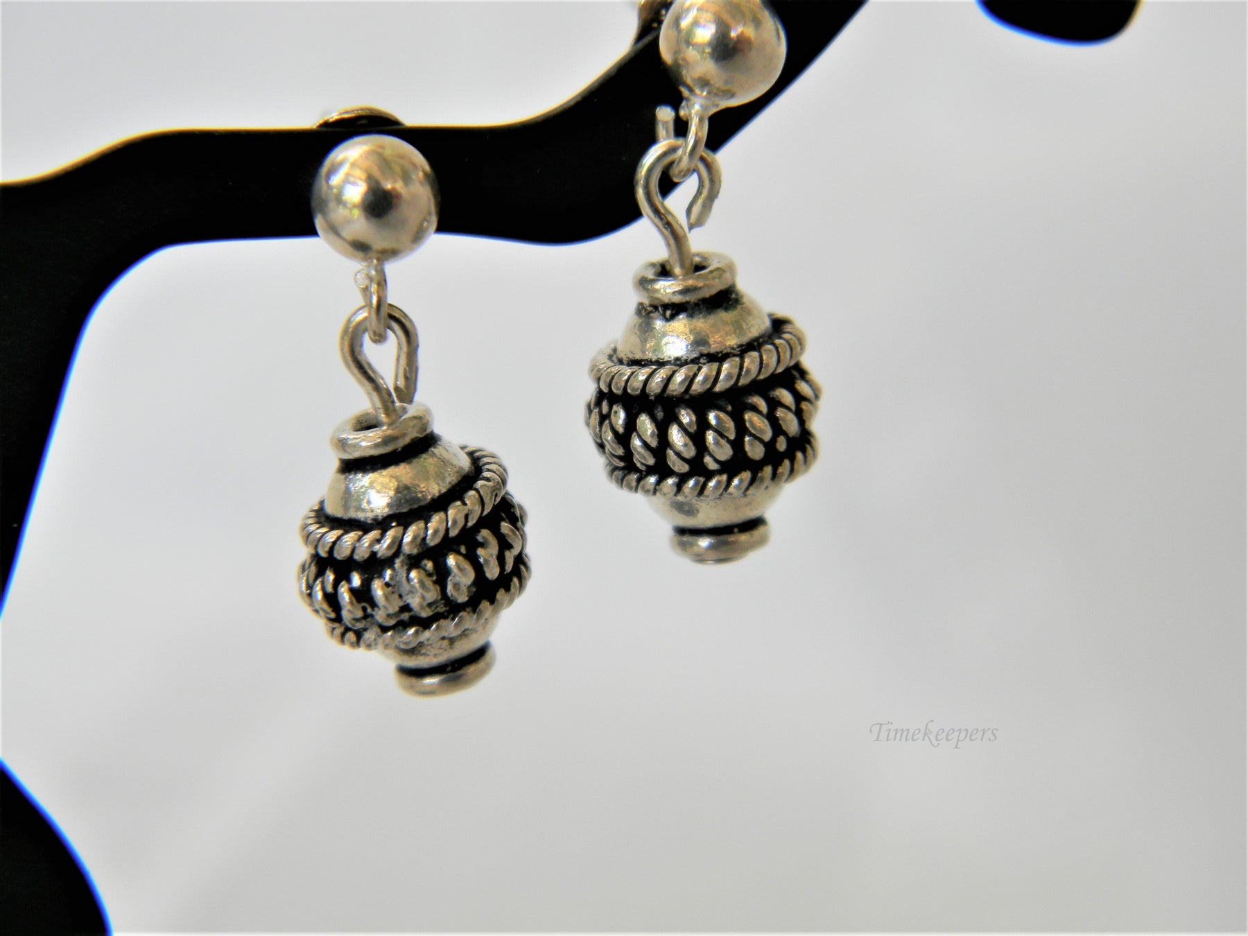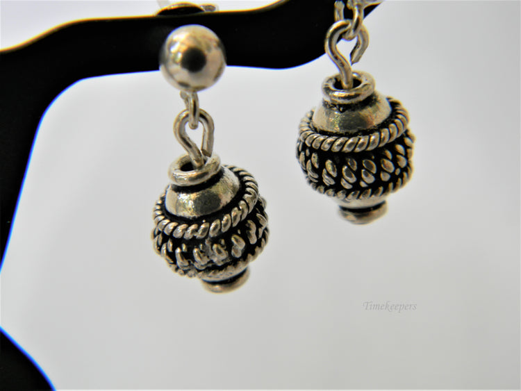 j393 Pretty Little Sterling Silver Ornate Bead Dangle Earrings