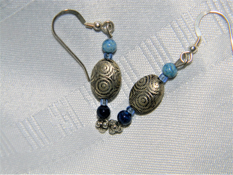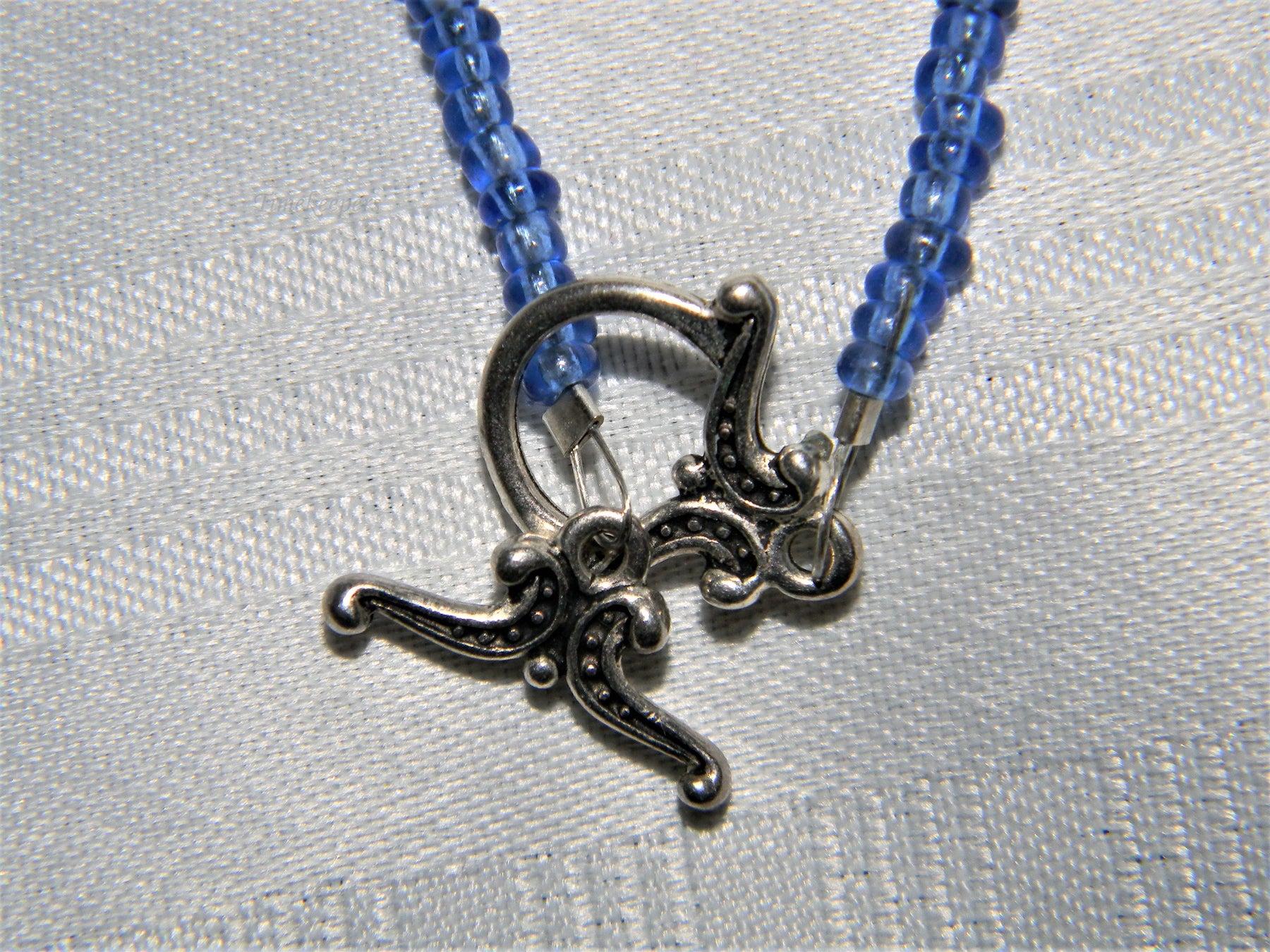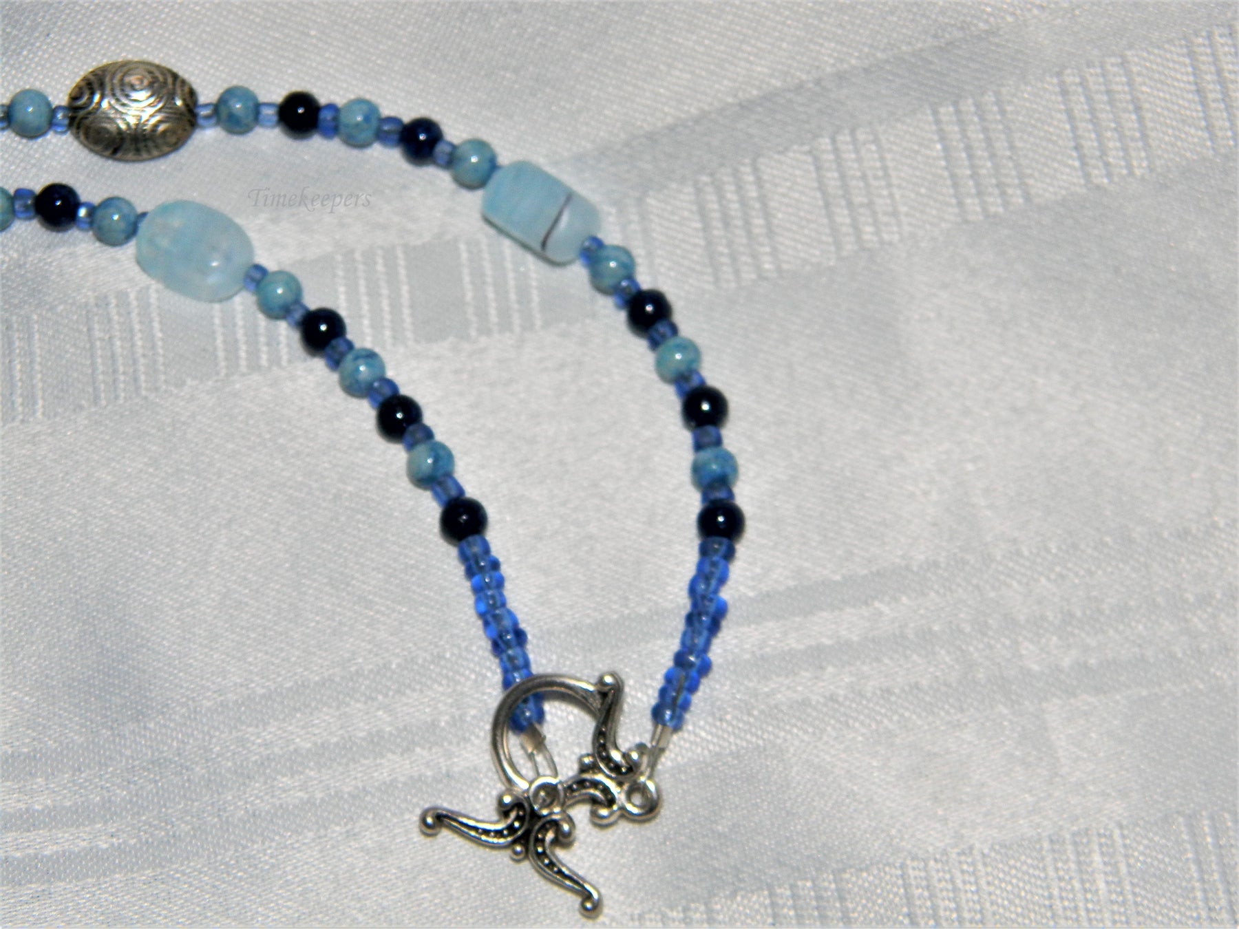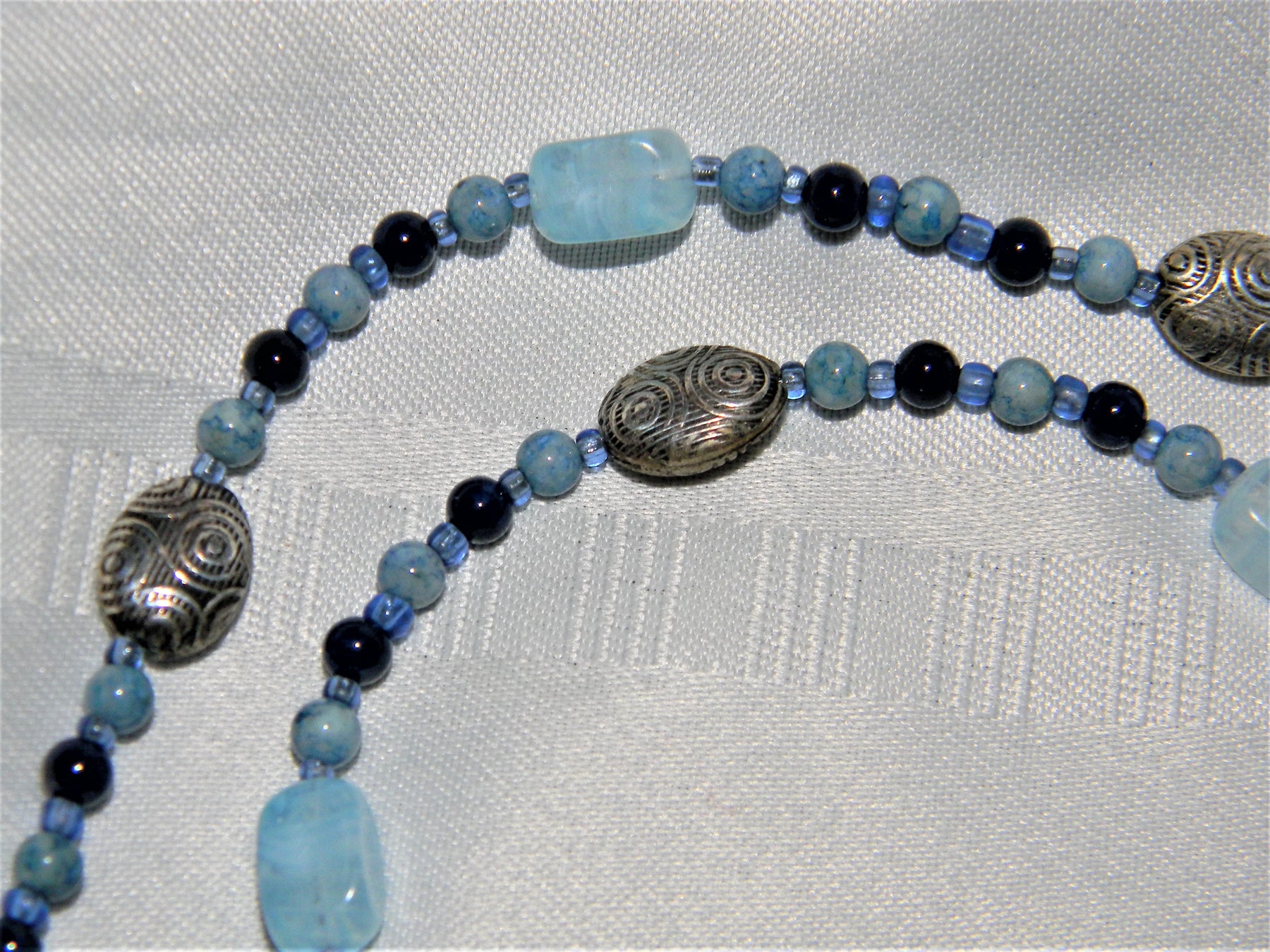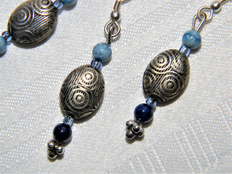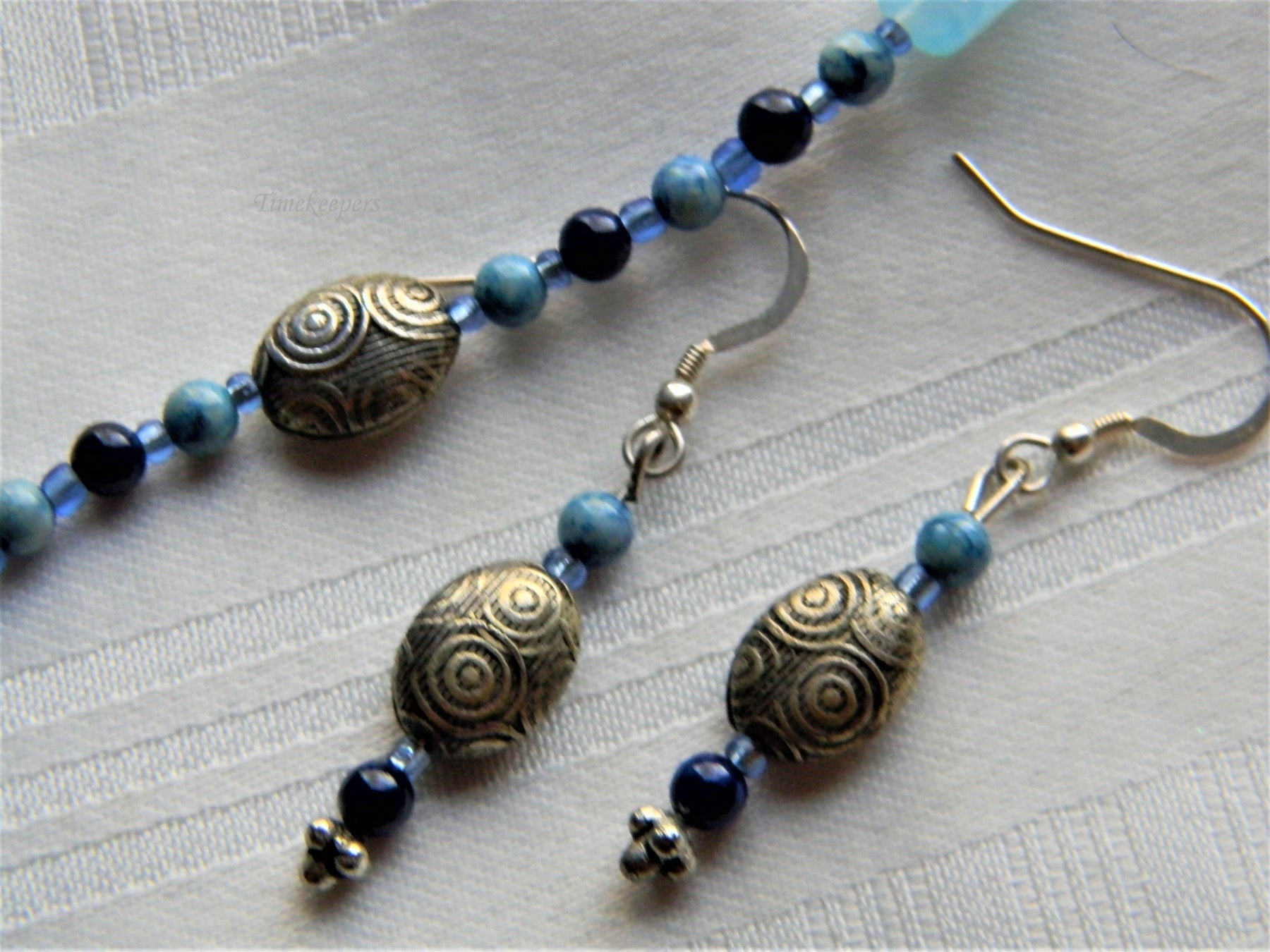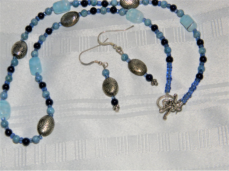 j556 Beautiful Handmade Beaded Necklace and Earring Set in Blues and Silver