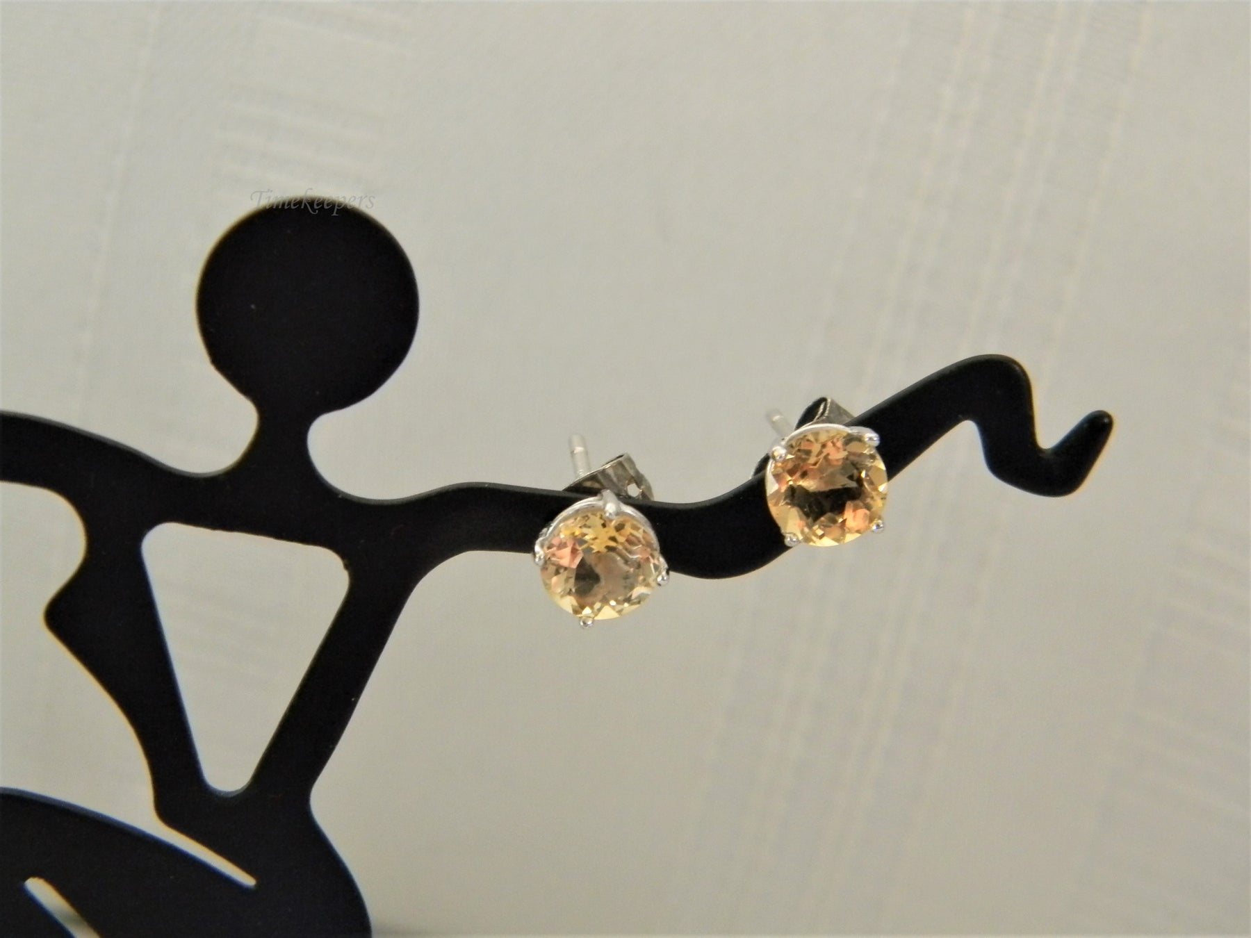 j628 Stunning Sterling Silver Post Pierced Earrings with Light Amber Stones