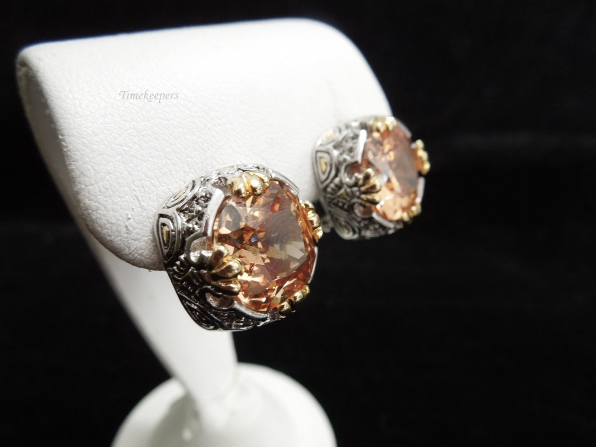 These are a lovely pair of silver tone earrings. They feature a large peach colored stone and two tone design that goes around the entire earring. Perfect for daily wear. Would be a nice anniversary, birthday, Christmas, Mother's Day or Valentine's Day gift for her.