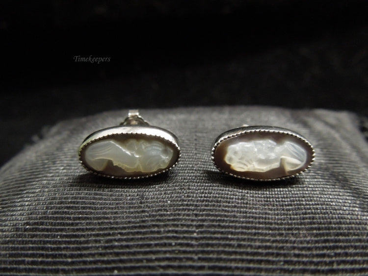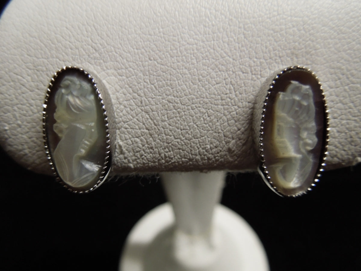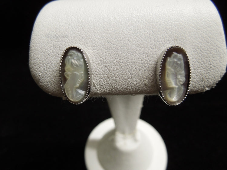 For Sale: (1) k585 Ladies Lovely Silver Tone Oval Cameo Stud Earrings