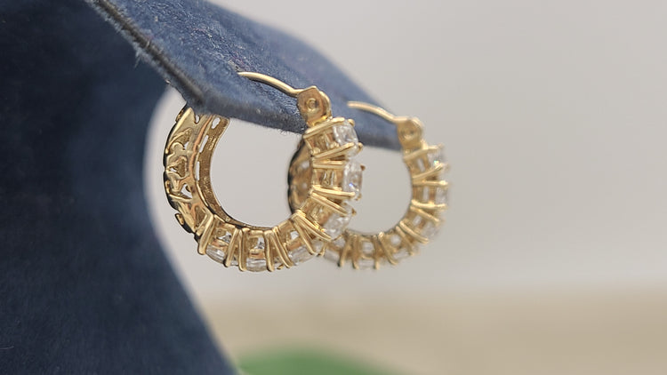 14kt Yellow Gold CZ Hoop Earrings