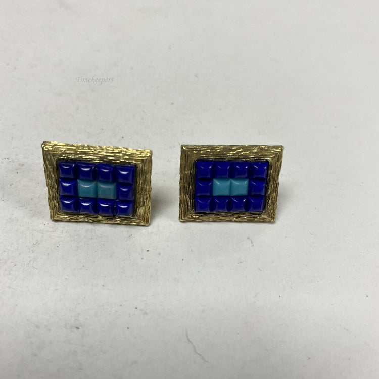m060 Vintage Elegant 14K Yellow Gold Lapis Turquoise Earrings