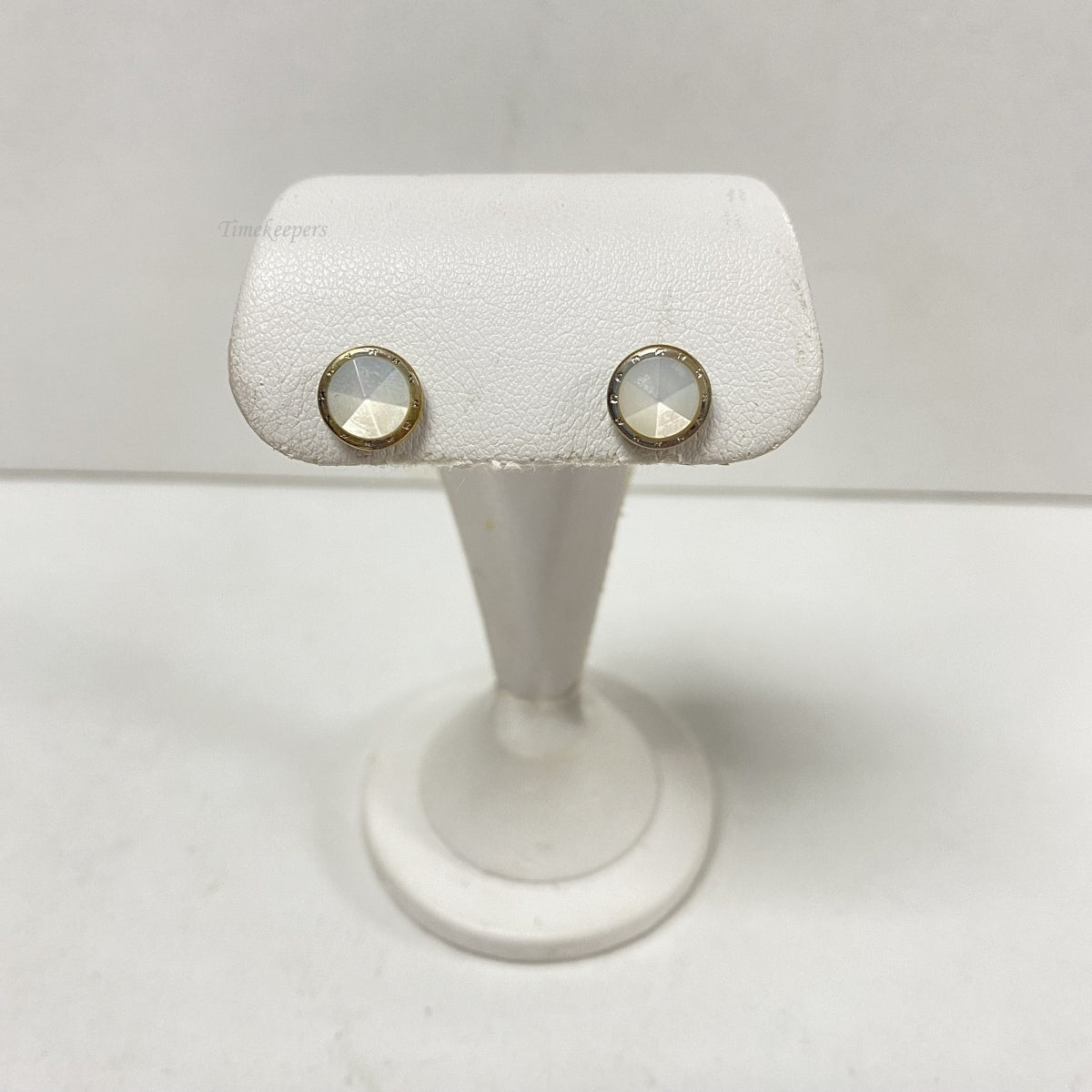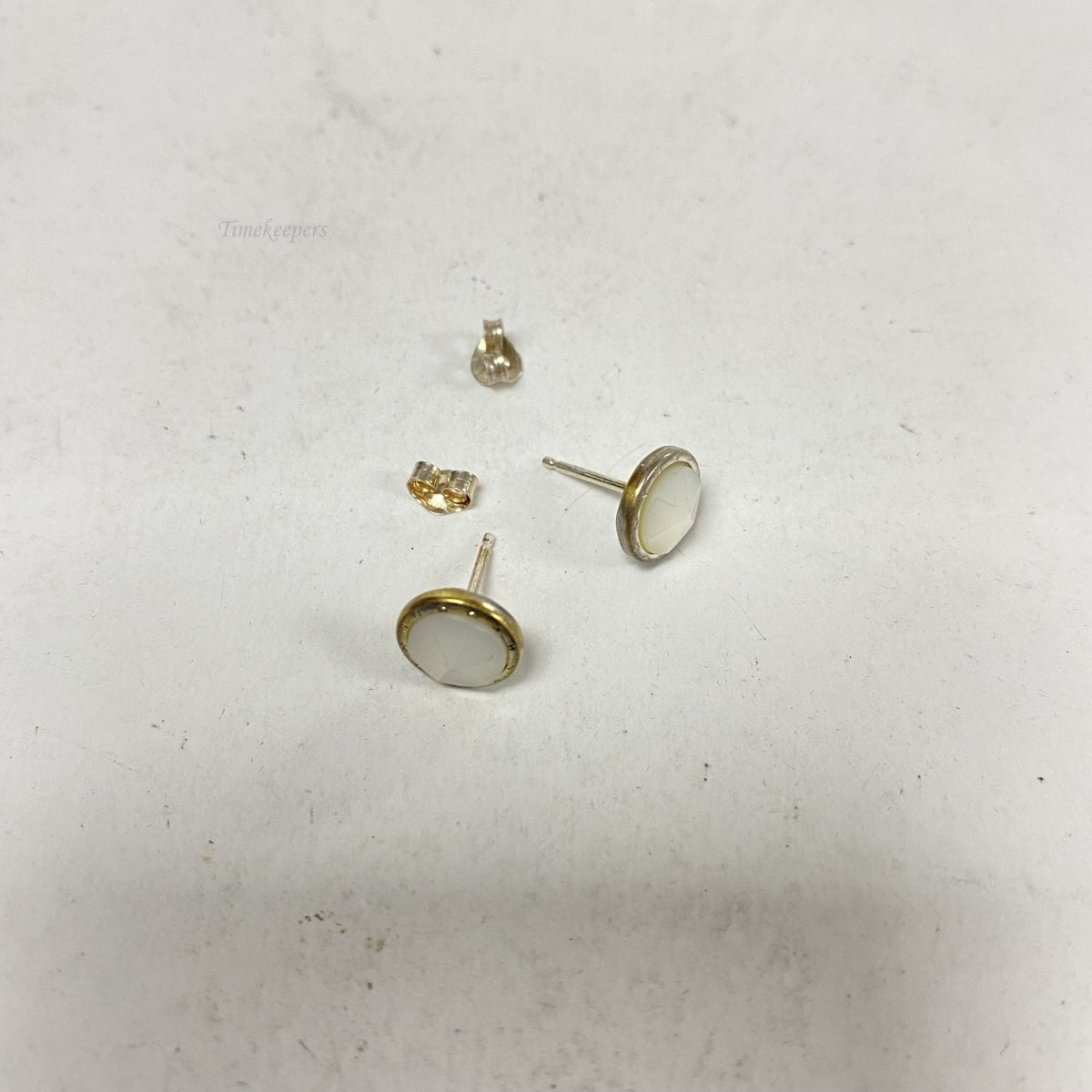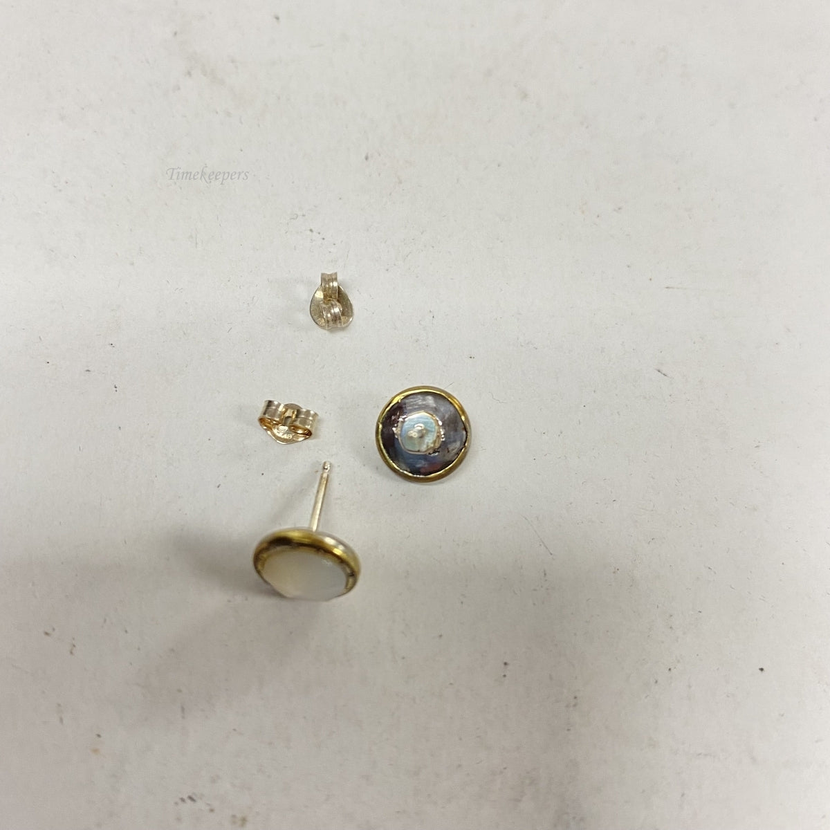 • Gold and silver tone earrings with mother of pearl(6mm in diameter)