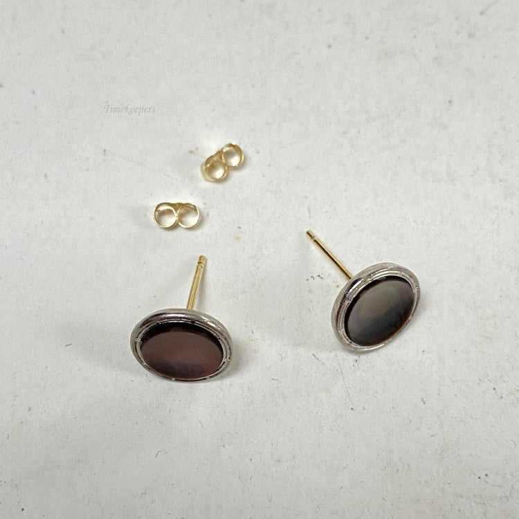m075 Vintage Gold Silver Tone Mother of Pearl Screw Back Earrings