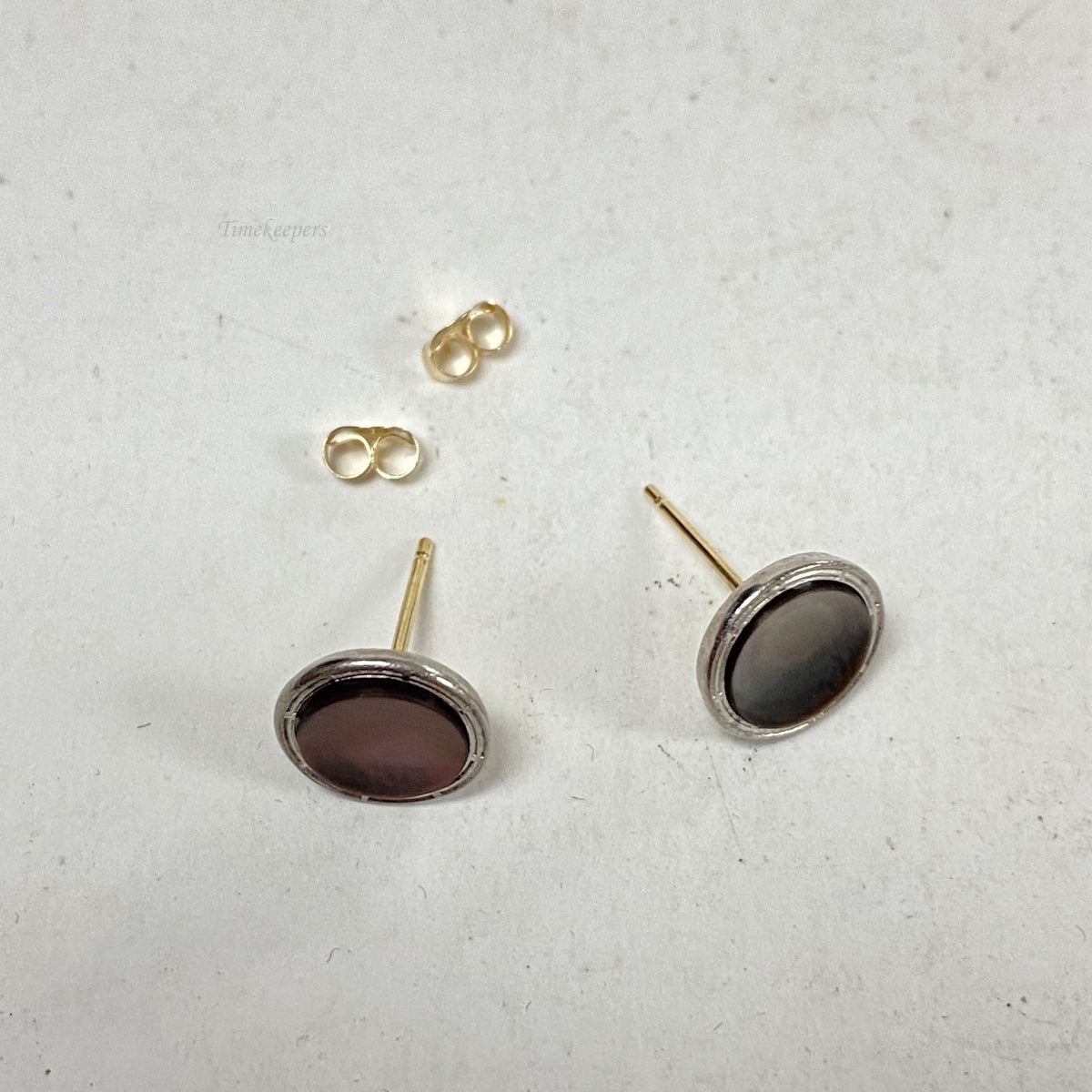 • Gold and silver tone earrings with grey mother of pearl(6mm in diameter)