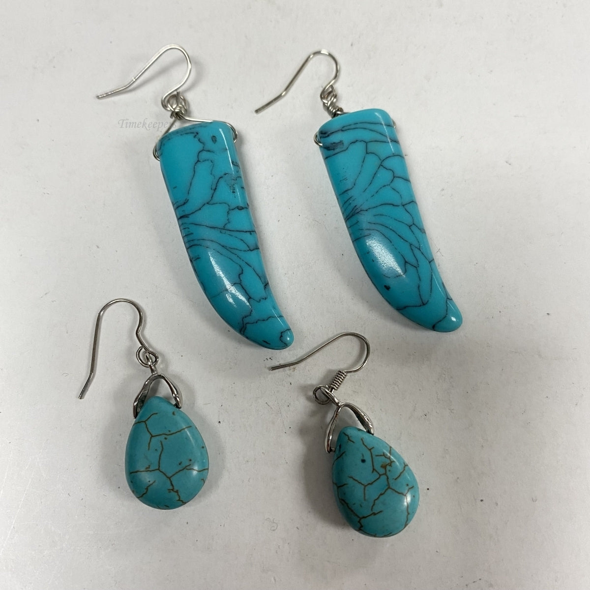 m187 Vintage Silver Tone Blue Stone Dangle Earrings 2 sets