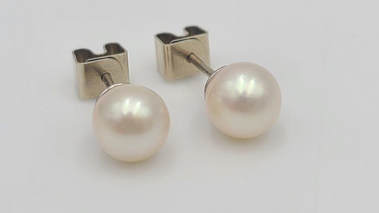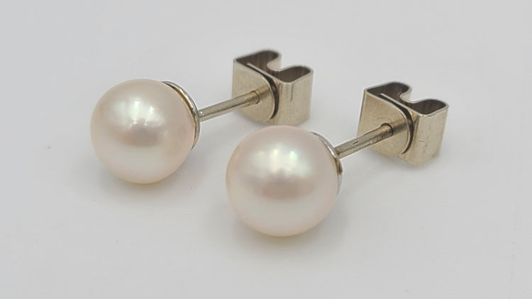 m684 Pretty Pearl Stud Earrings set in 14kt White Gold