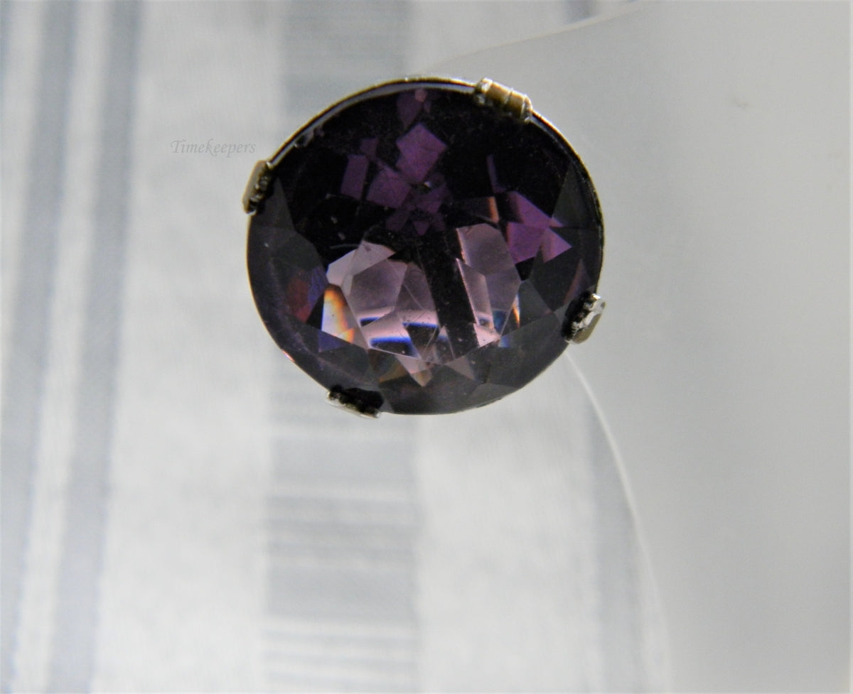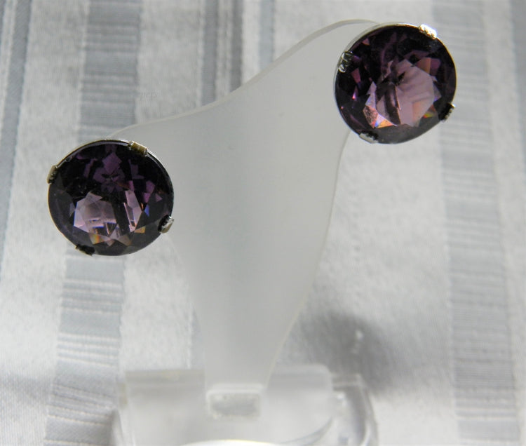 Pretty pair of faceted glass purple stone button type, clip on earrings in silver tone. There are no markings on these earrings, but they are very pretty with great sparkle.