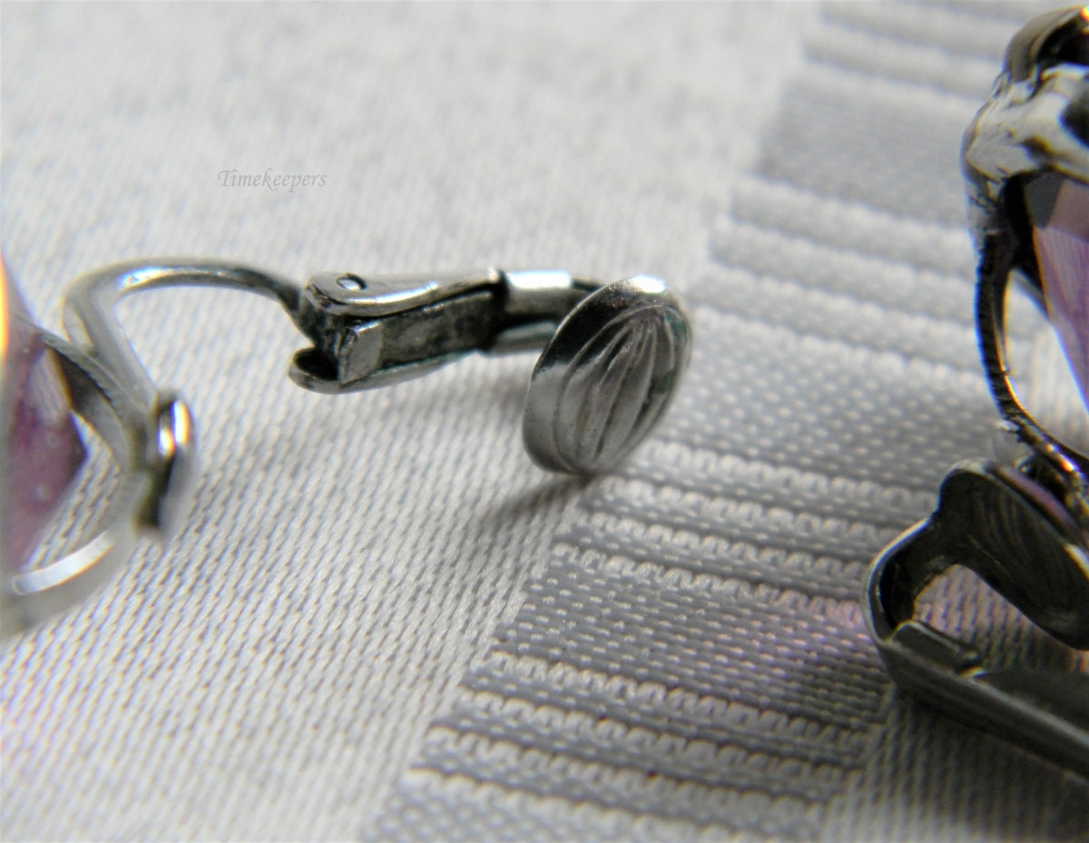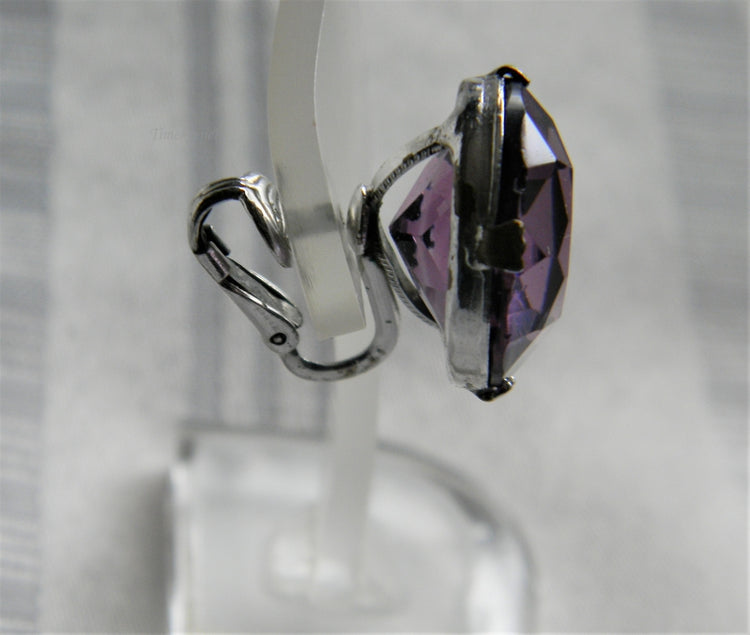For Sale: (1) Pretty Silver Tone Clip on Earrings with Faceted Purple Glass Stones