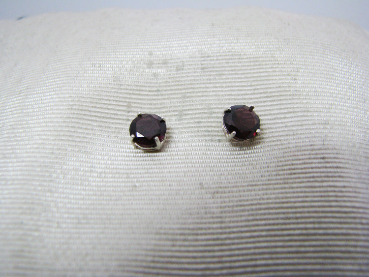 Pretty Sterling Silver Post Earrings with Dark Red Stones