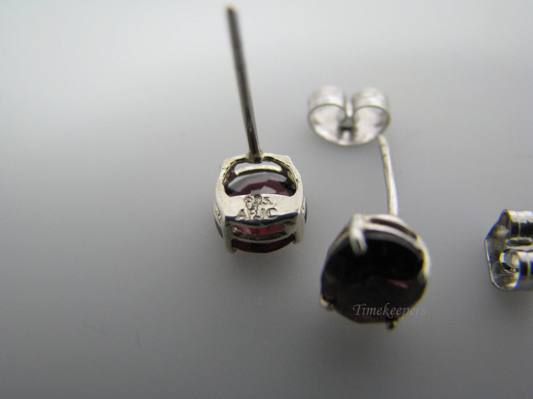 c531 Pretty Sterling Silver Post Earrings with Dark Red Stones
