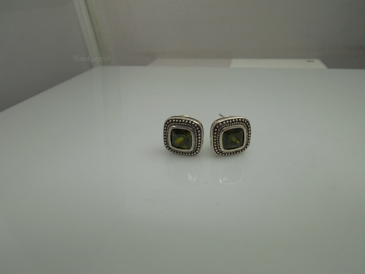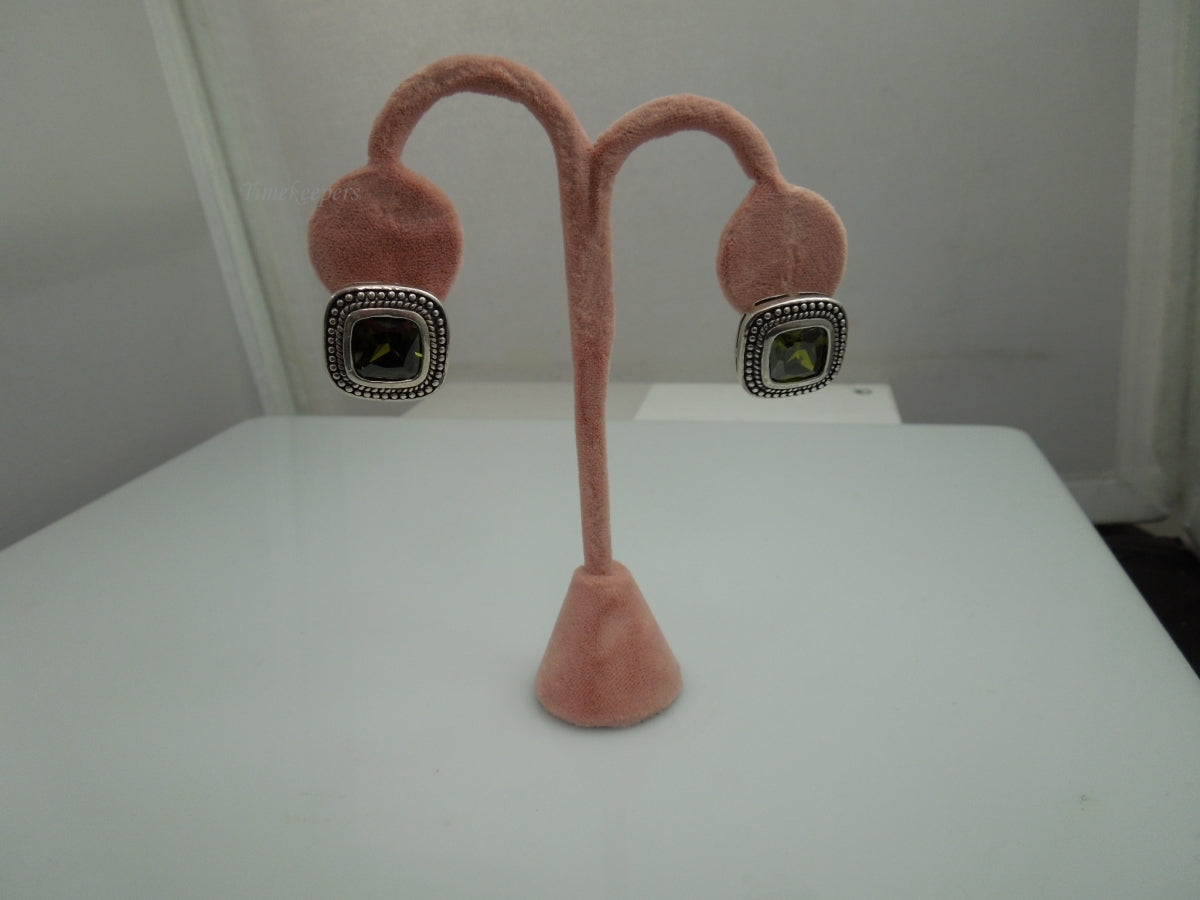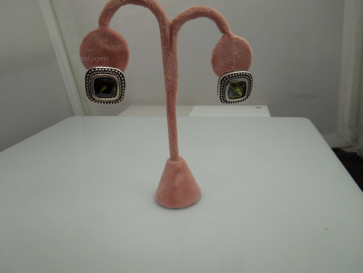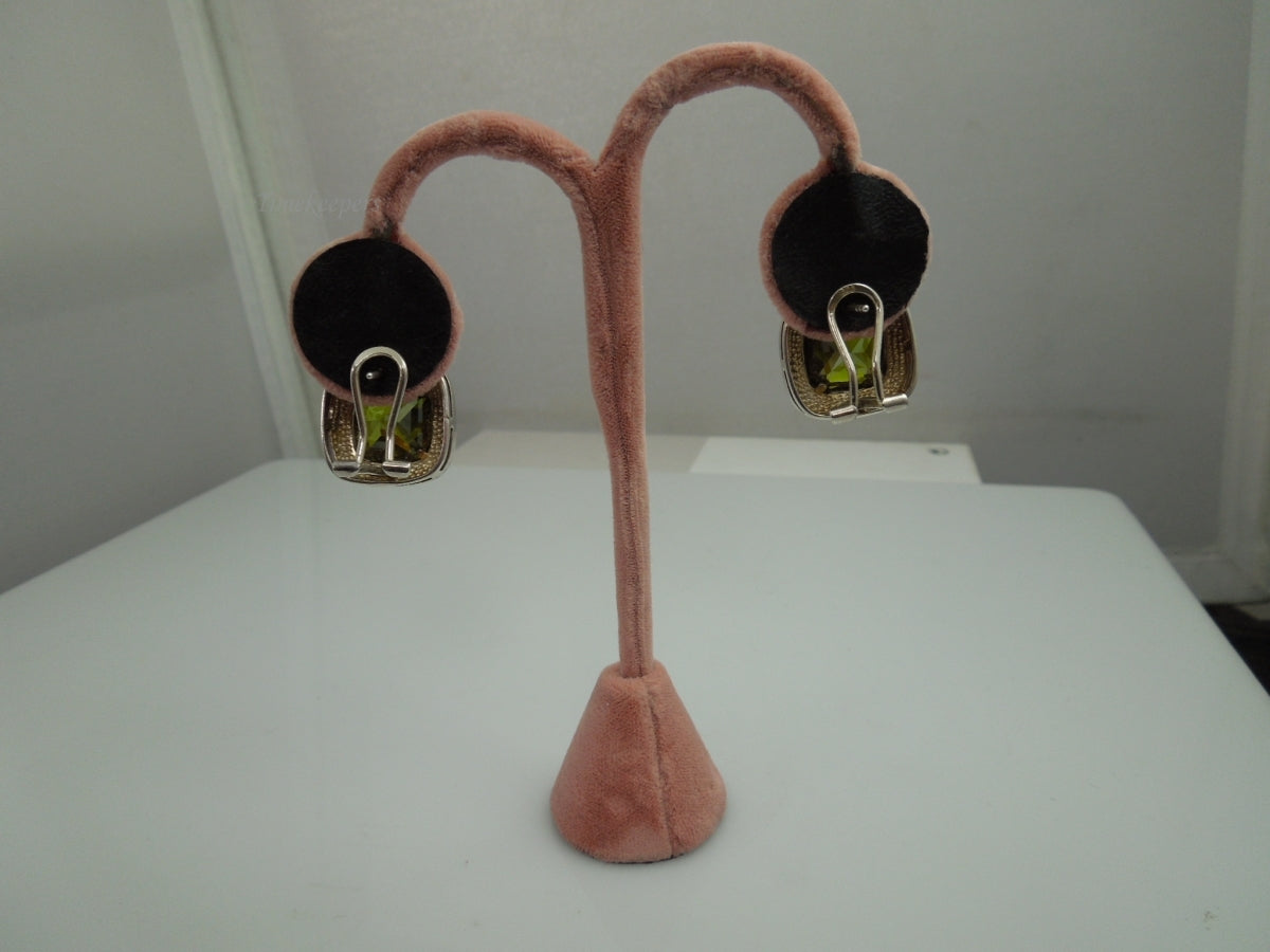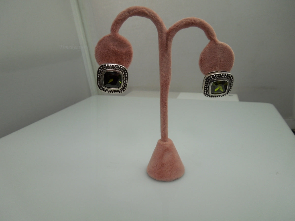 For Sale: (1) q008 Pretty Hoop Sterling Silver Earrings with Light Green stone attached.