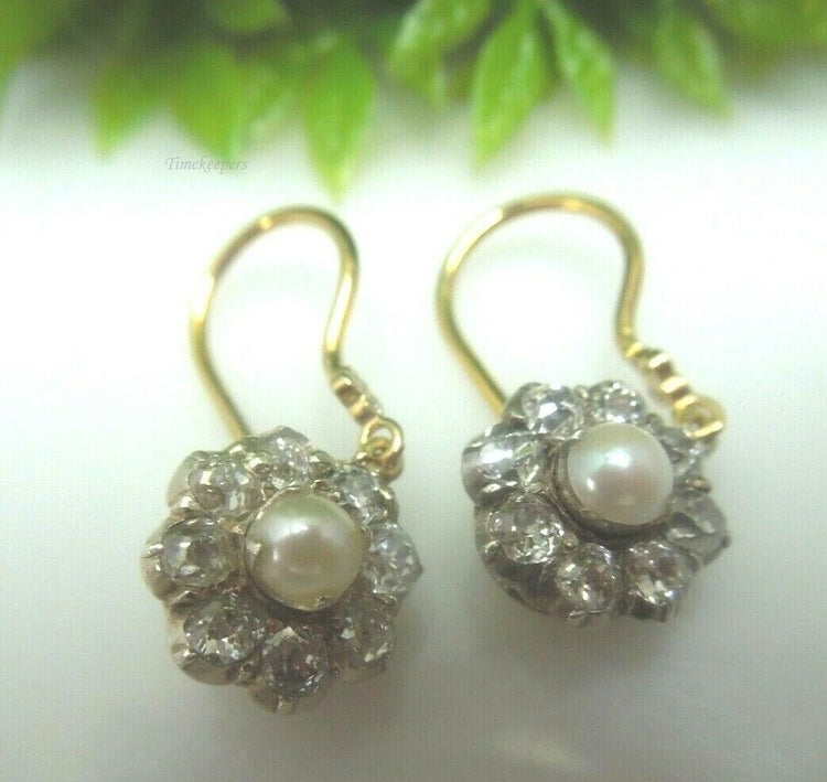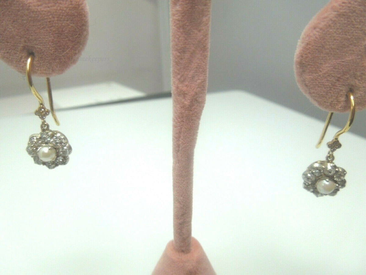 For Sale(1) : q516 Lovely Pair of 14kt Yellow Gold Pearl Diamond 0.39cts Dangle Earrings