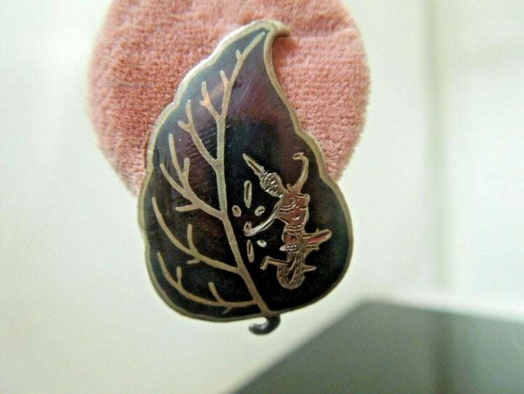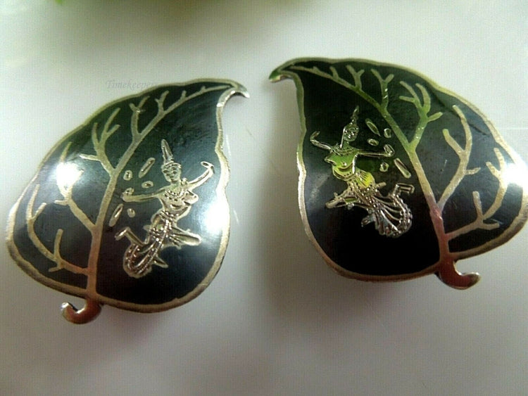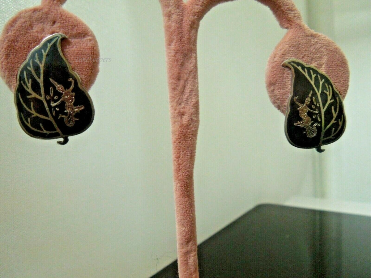 For Sale: (1) q726 Vintage Siam Sterling Silver Leaf Shaped Earrings 6.7 g