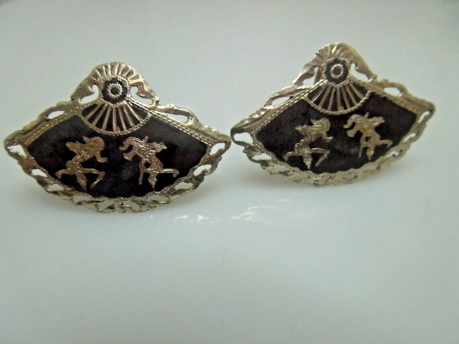 r197 Vintage Siam Sterling Silver Screw back Earrings Stamped