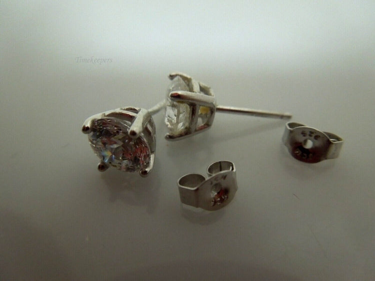 For Sale: (1) r679 Lovely Pair of Sterling Silver 925 Cubic Zirconia Studs Earrings Signed