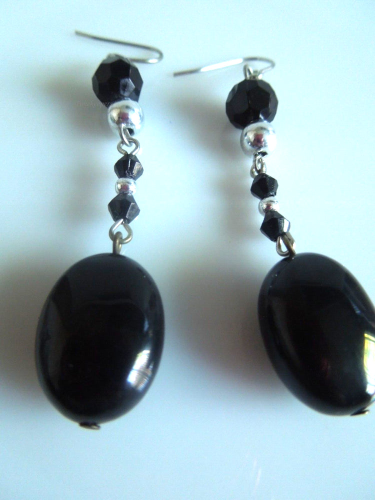 For Sale(1) s312 Vintage Black Natural Stone Earrings, Dangle Stone Bead Earrings, Natural Semi Precious Stone