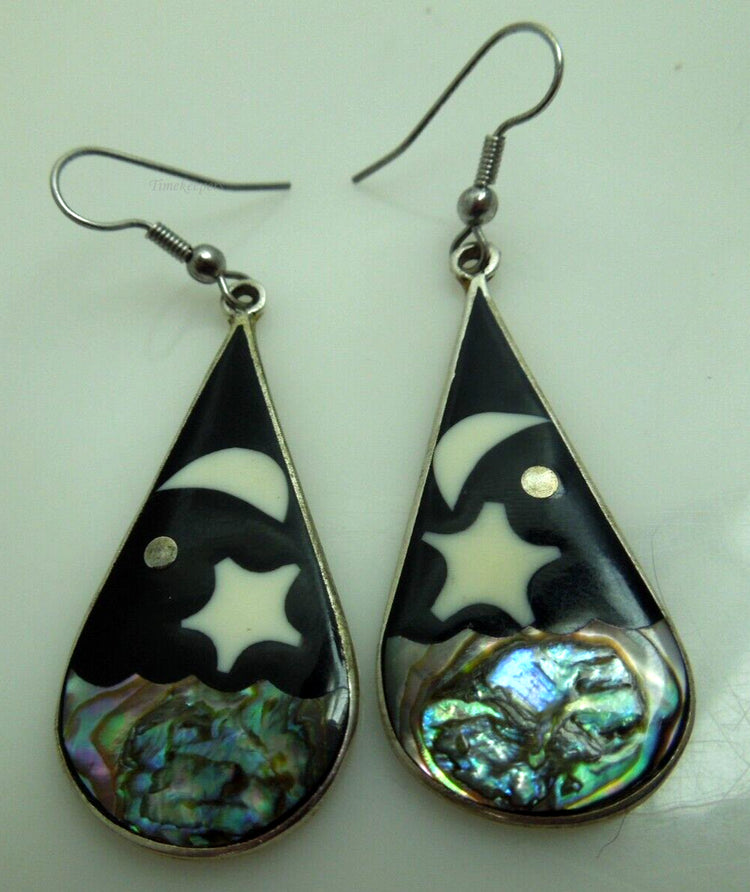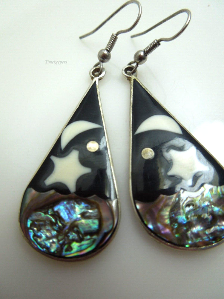 s718 Celestial Earrings, Landscape Earrings, Starry Night Design, Abalone Shell Inlay, Silver Abalone Earrings,