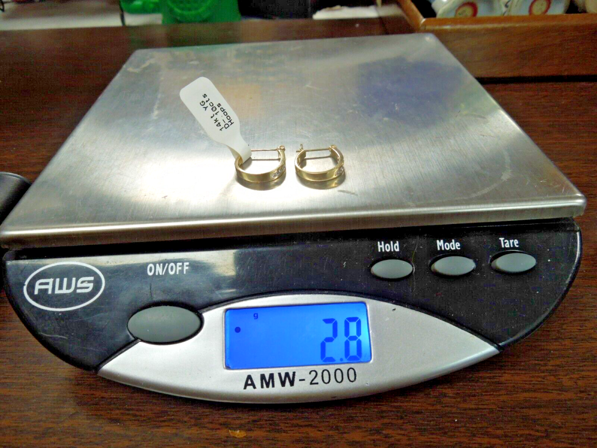 For Sale: (1) s785 14kt Yellow Gold D- Diamond .10 cts Small Hoop Earrings Signed 2.8g
