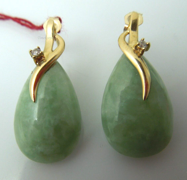 s907 14kt Yellow Gold Diamond Jade Teardrop Dangle Earrings