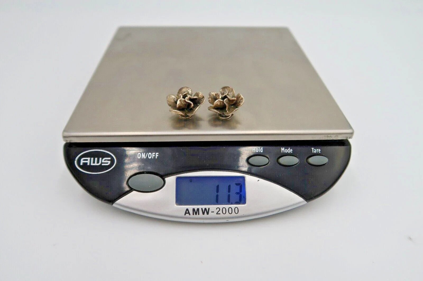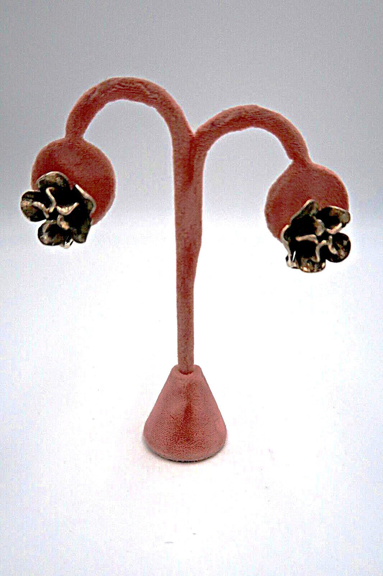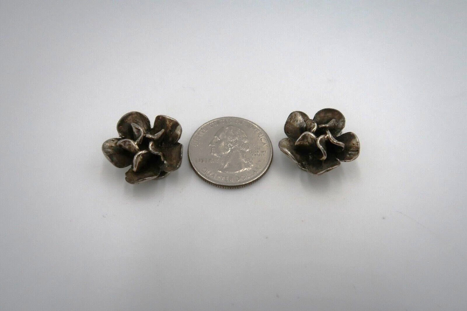 For Sale: (1) t371 Vintage Flower Earrings - Sterling Silver Flower Clip-on earrings