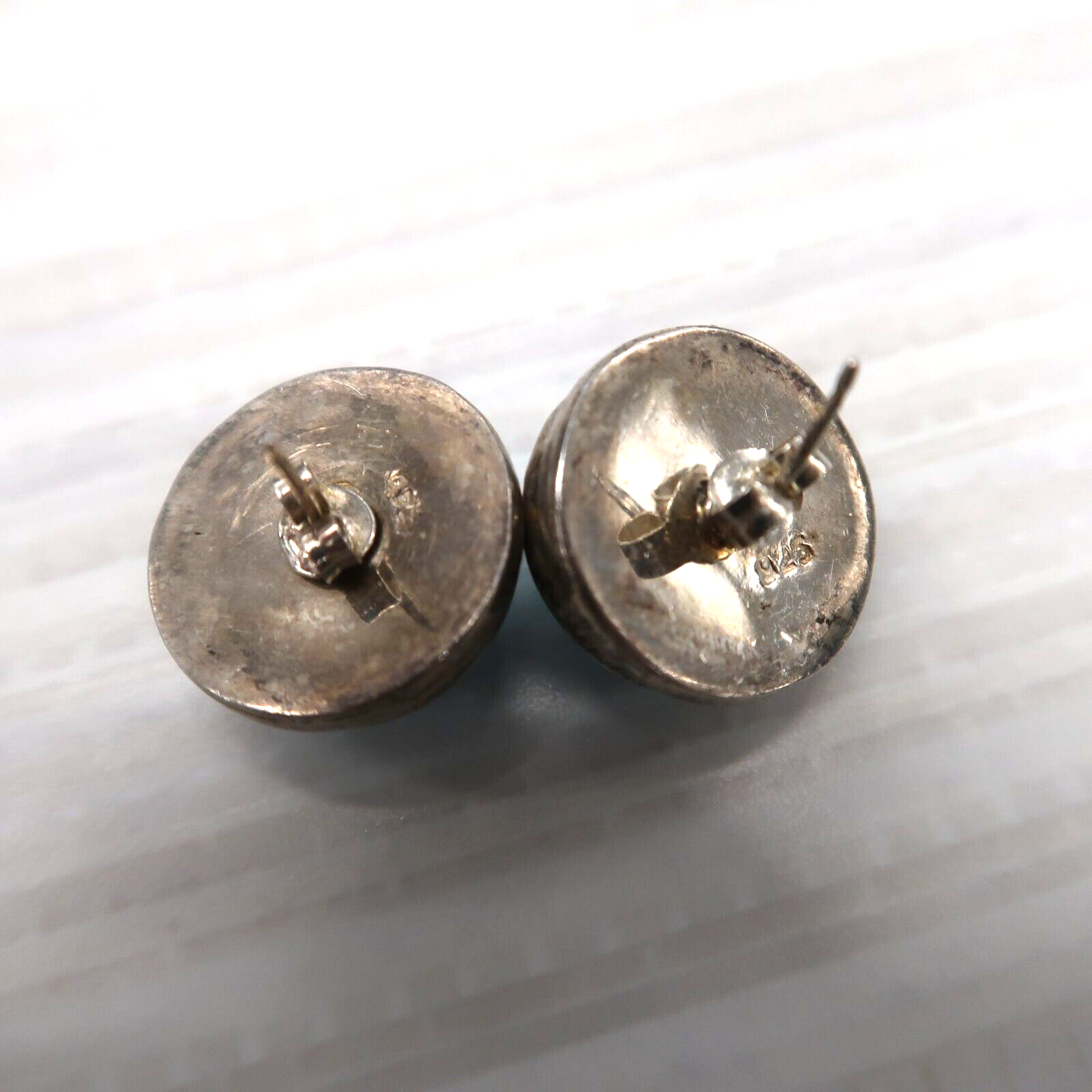 For Sale: (1) t613 Turquoise Colored Round Cabochon Sterling Silver Stud Chic Cocktail Earrings