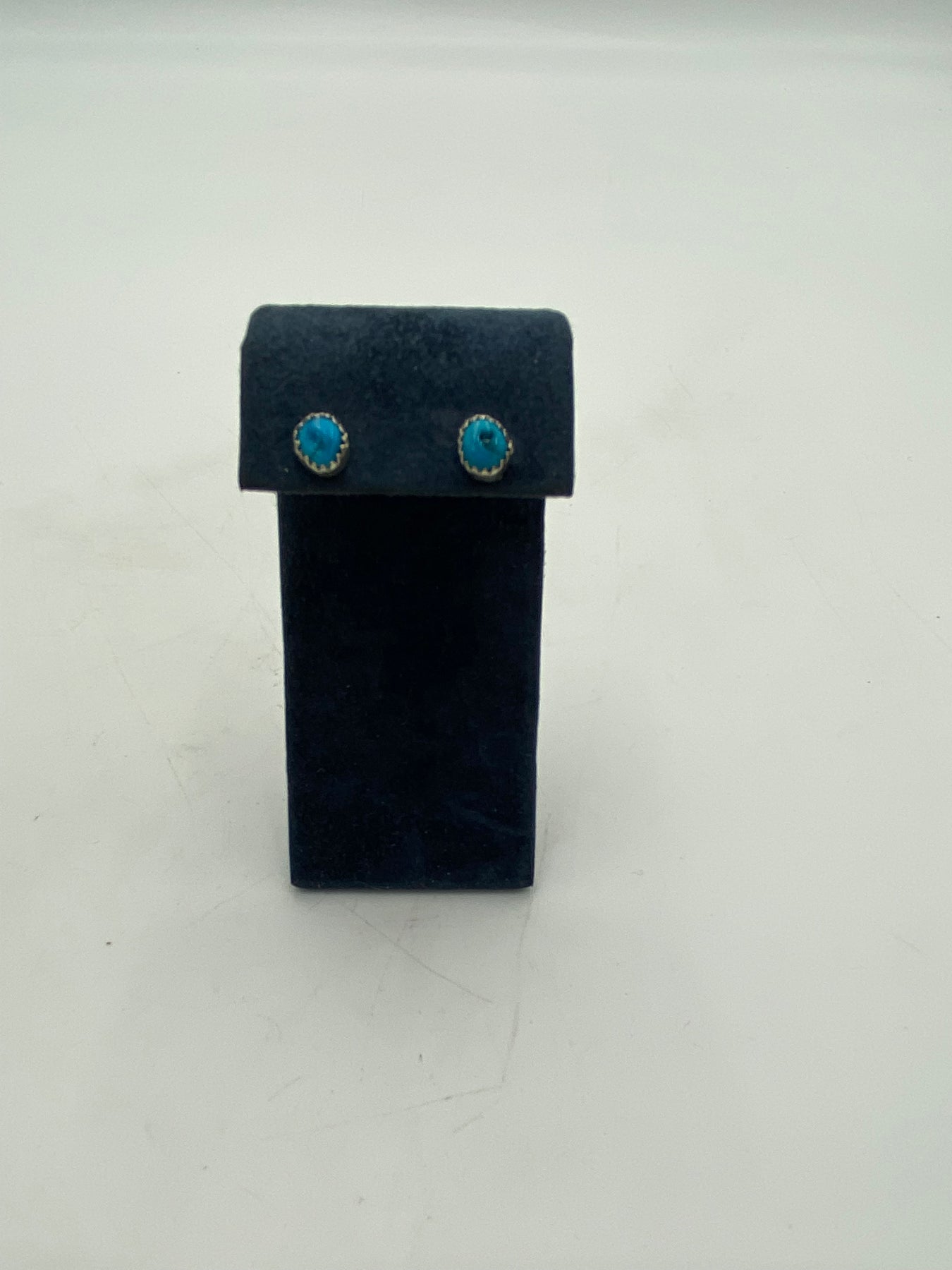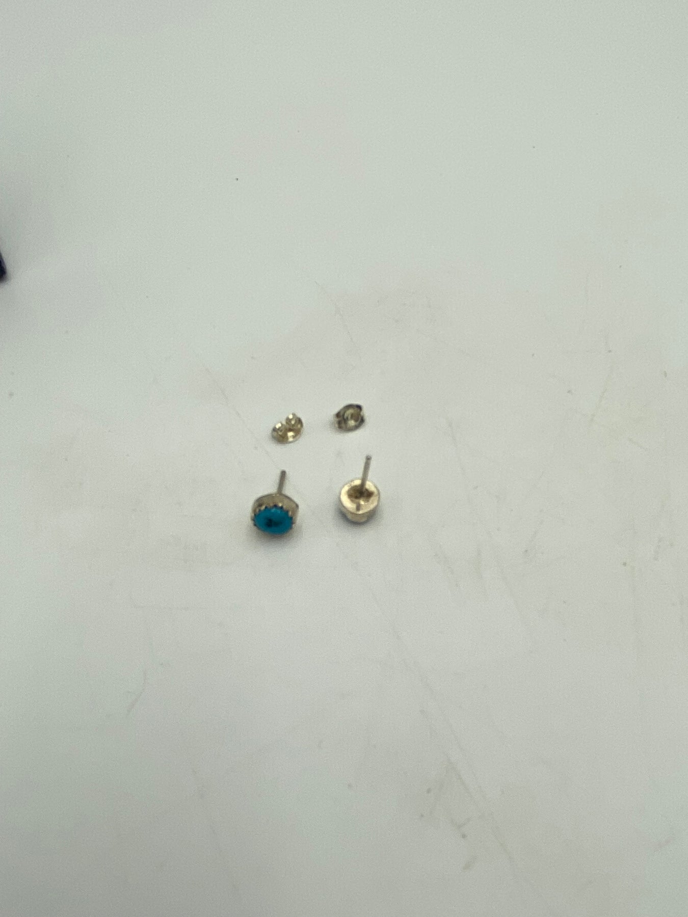 • Vintage Sterling silver stud earrings. Blue stones 4mm x 5mm.