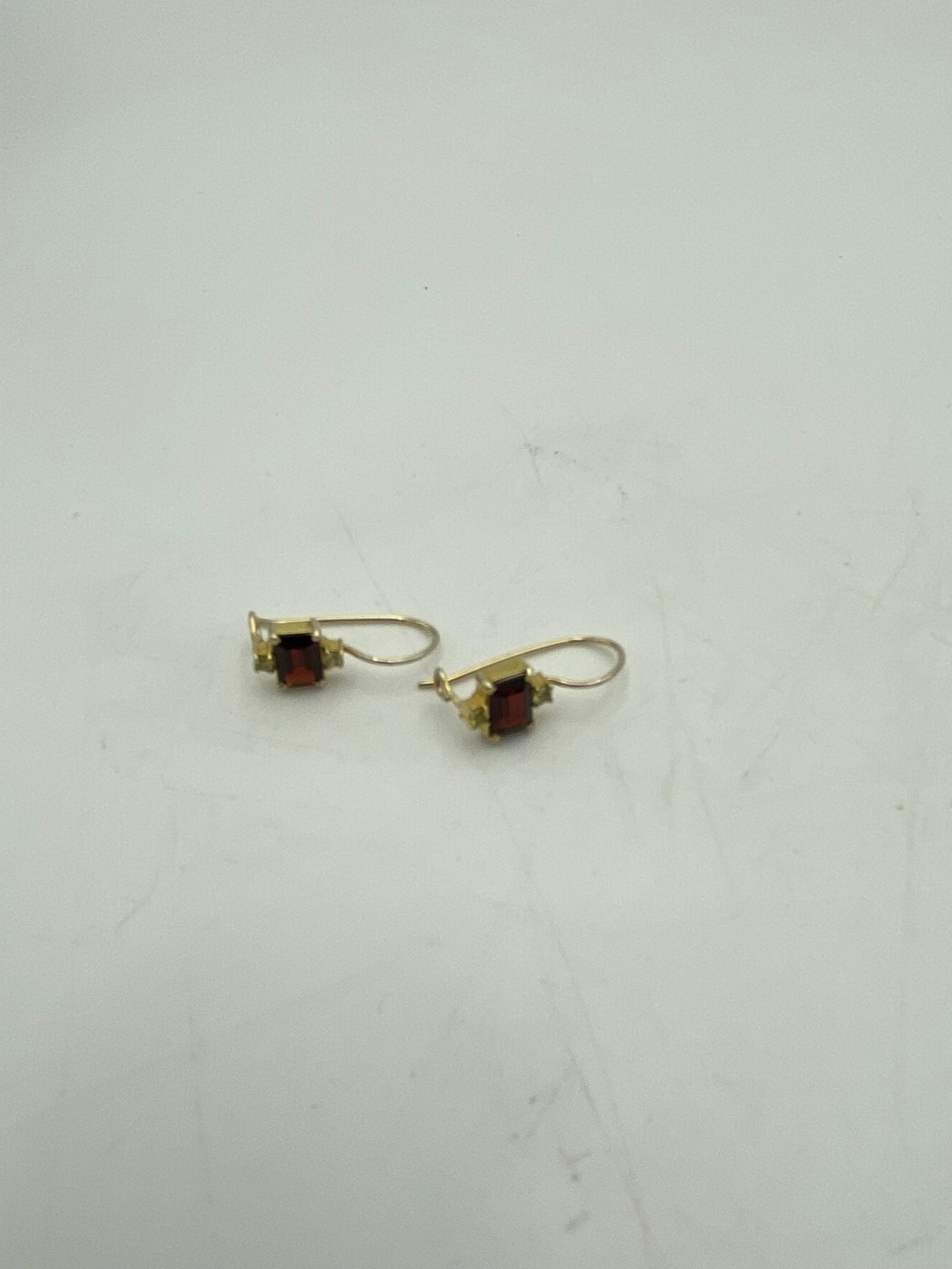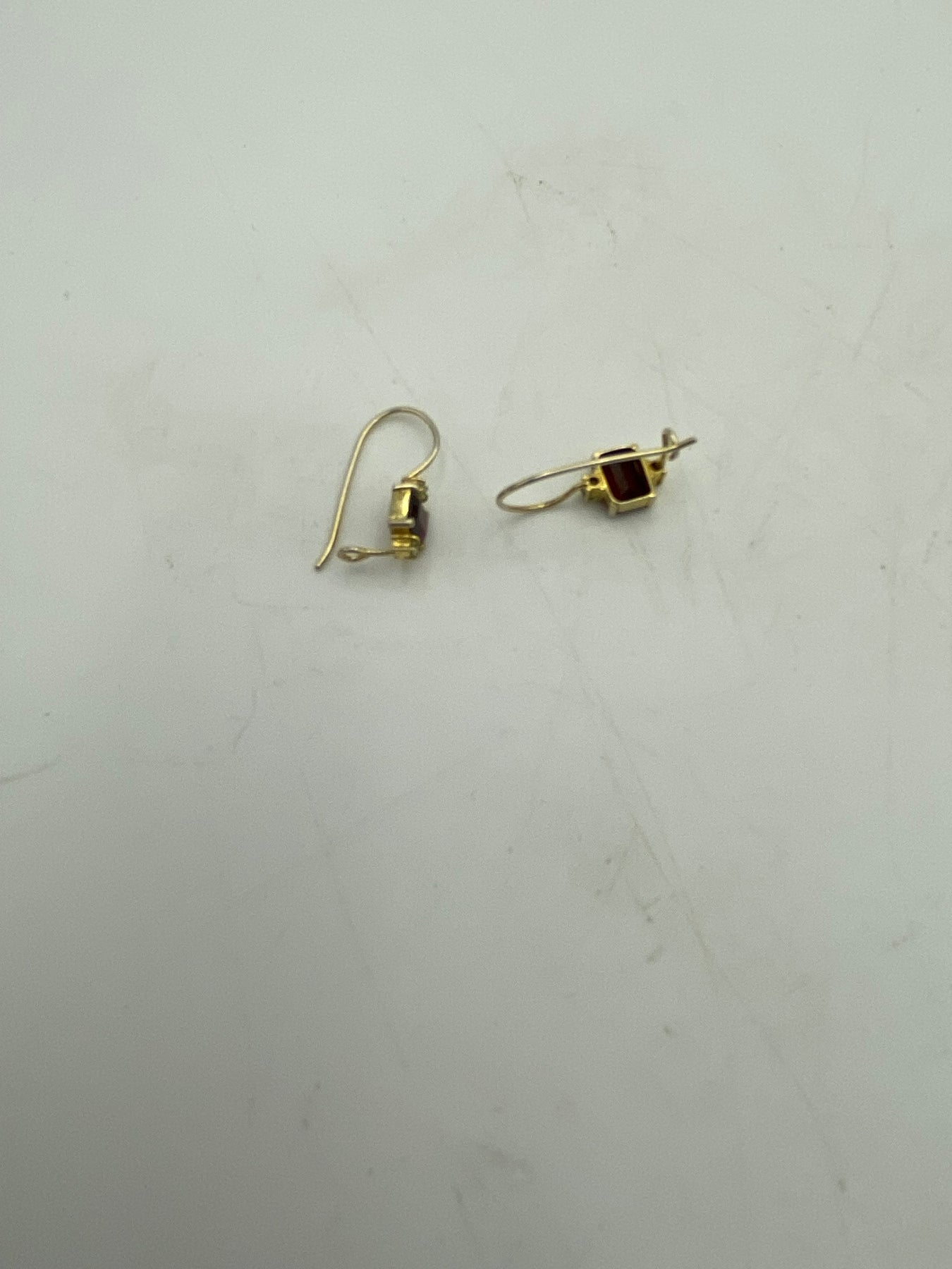 - Vintage Sterling silver gold tone dangle/drop earrings. Red stones 7mm x 5mm.