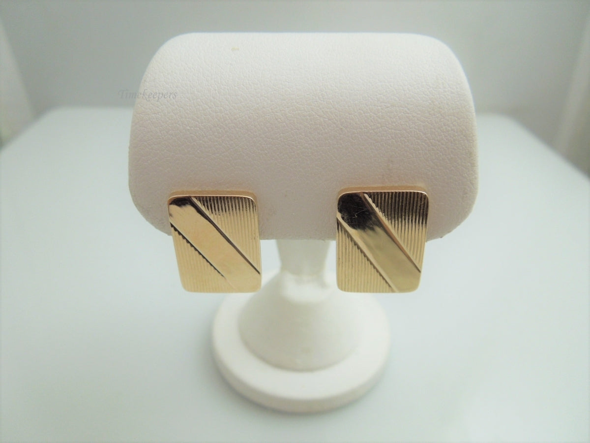 For Sale: (1) c484 Beautiful Ladies 14kt Yellow Gold Rectangular Engravable Earrings