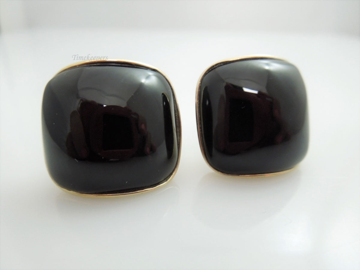 g896 Lovely Ladies 14kt Yellow Gold Large Square Onyx Earrings