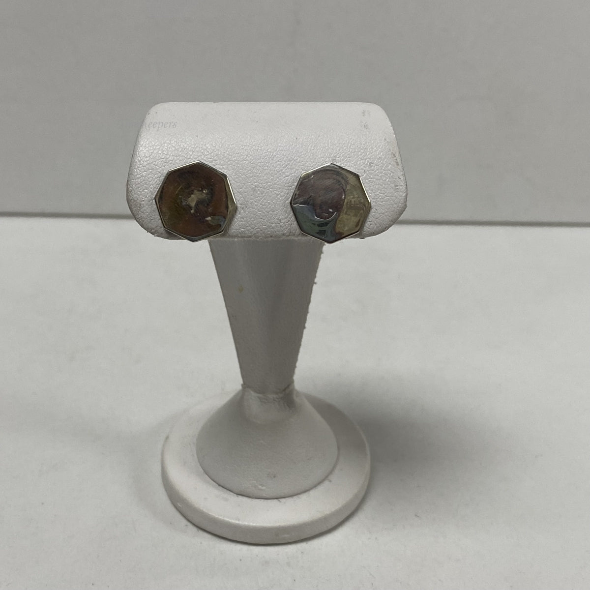m075 Vintage Gold Silver Tone Mother of Pearl Screw Back Earrings