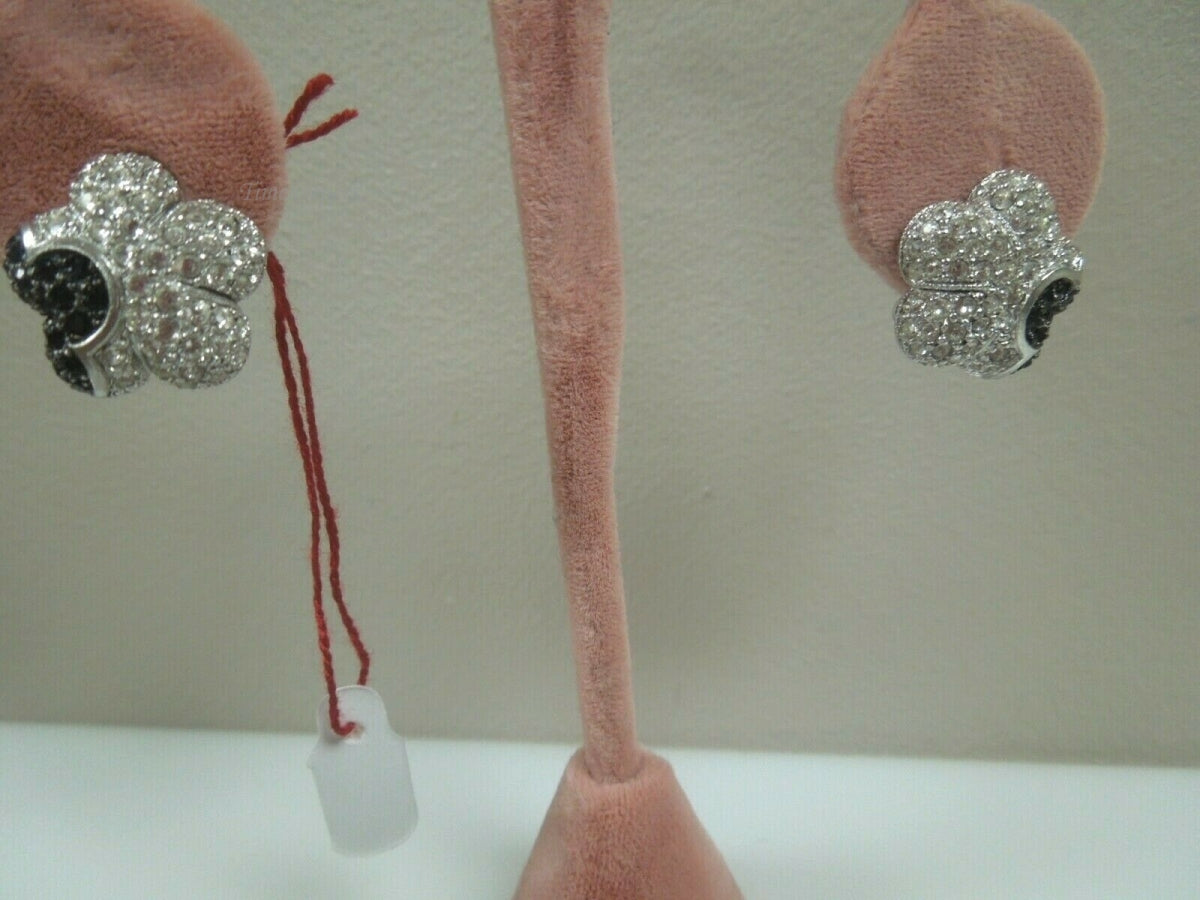 r026 Vintage Beautiful Sterling Silver Flower Clip On Earrings