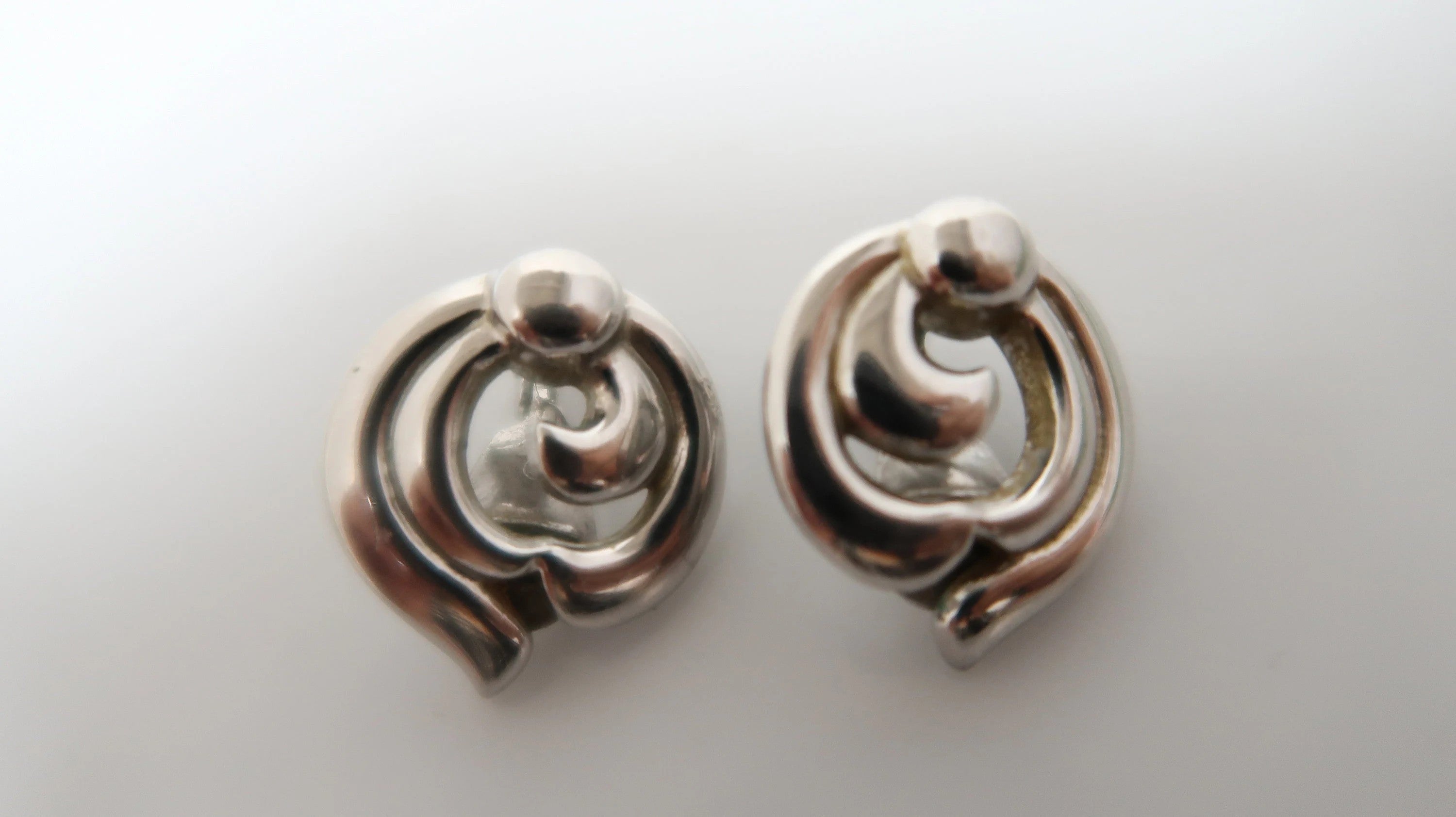 t371 Vintage Flower Earrings - Sterling Silver Flower Clip-on earrings