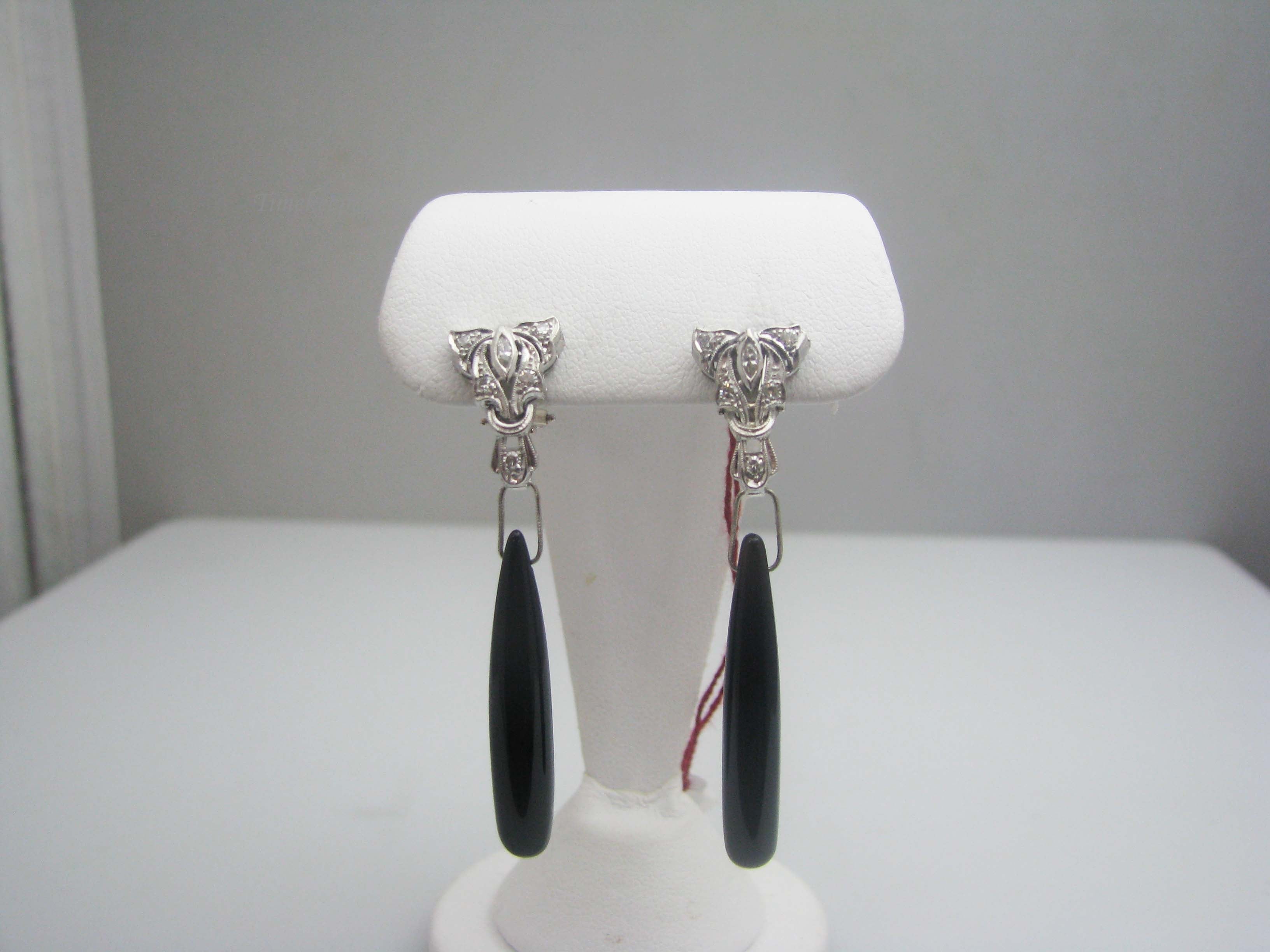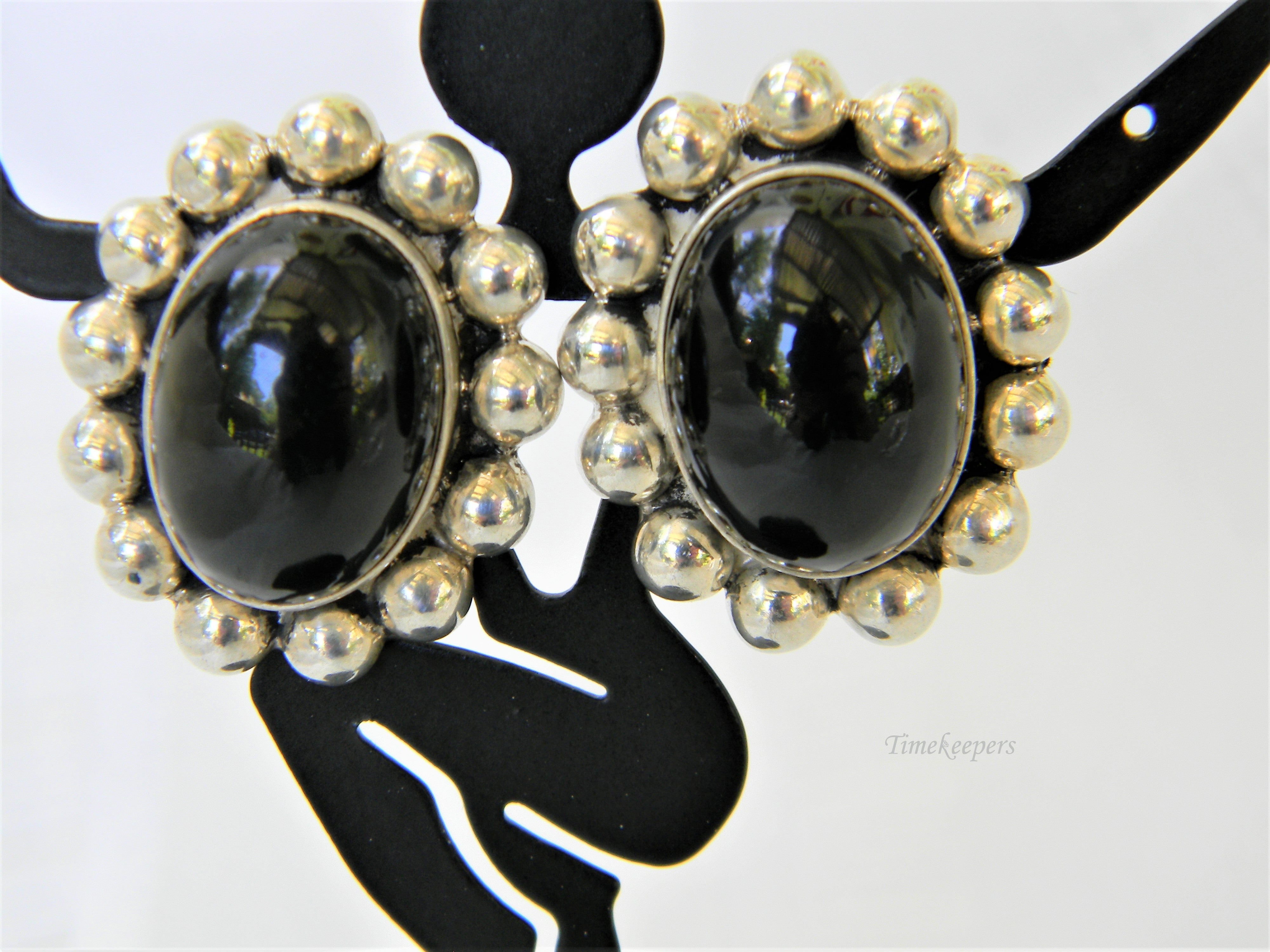 j396 Beautiful Oval Onyx Cabochon Silver Earrings NOT PIERCED EARRINGS