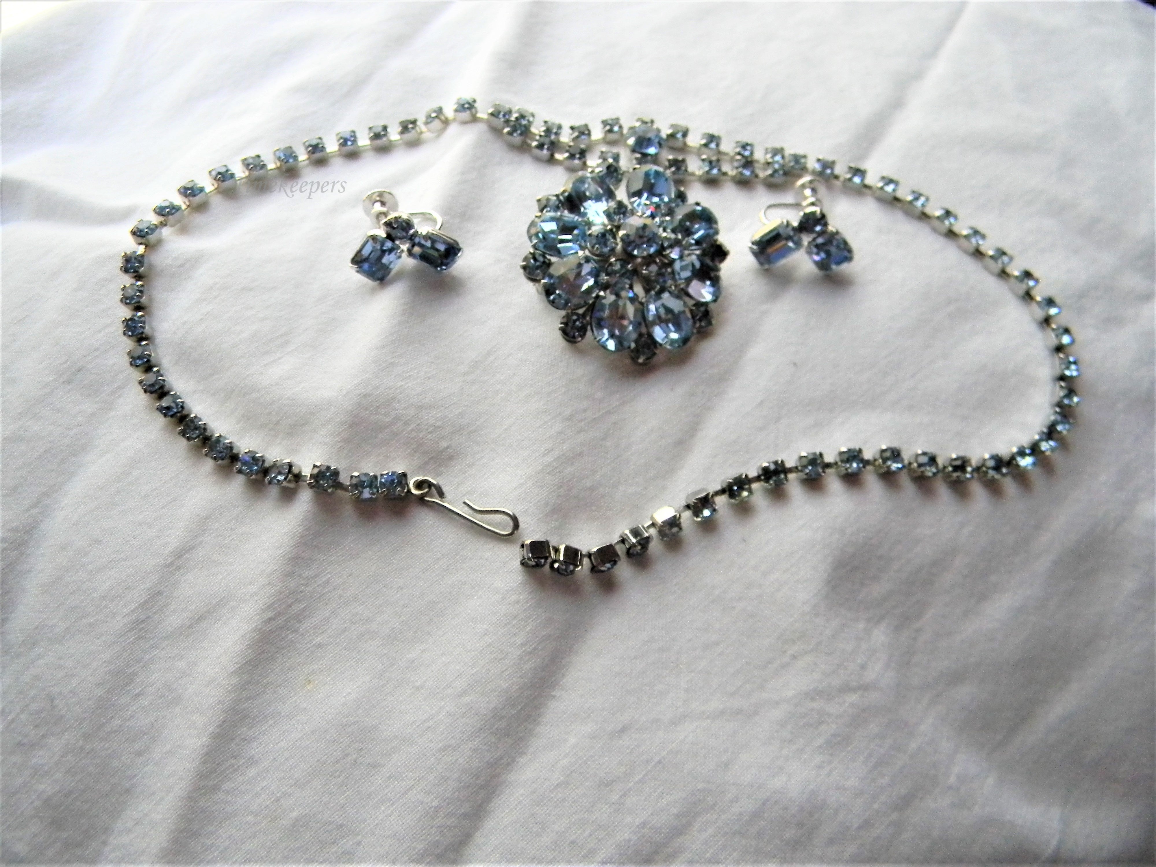 j515 Gorgeous Vintage Jewelry Set in Light Blue Stones and Silver Tone