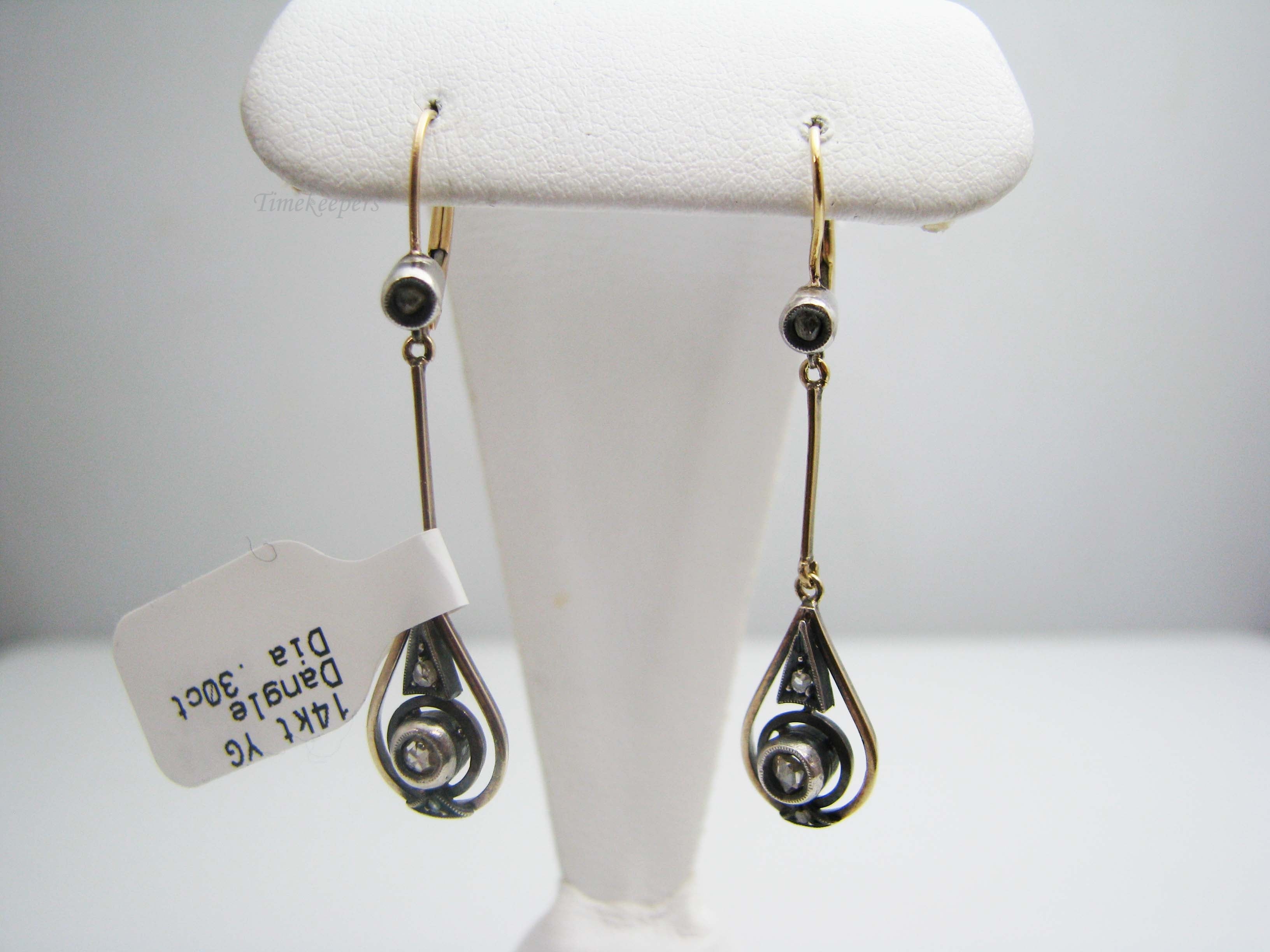 b284 Antique 14kt Yellow Gold Diamond dangle earrings